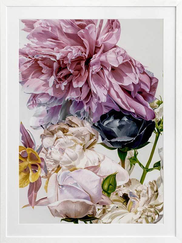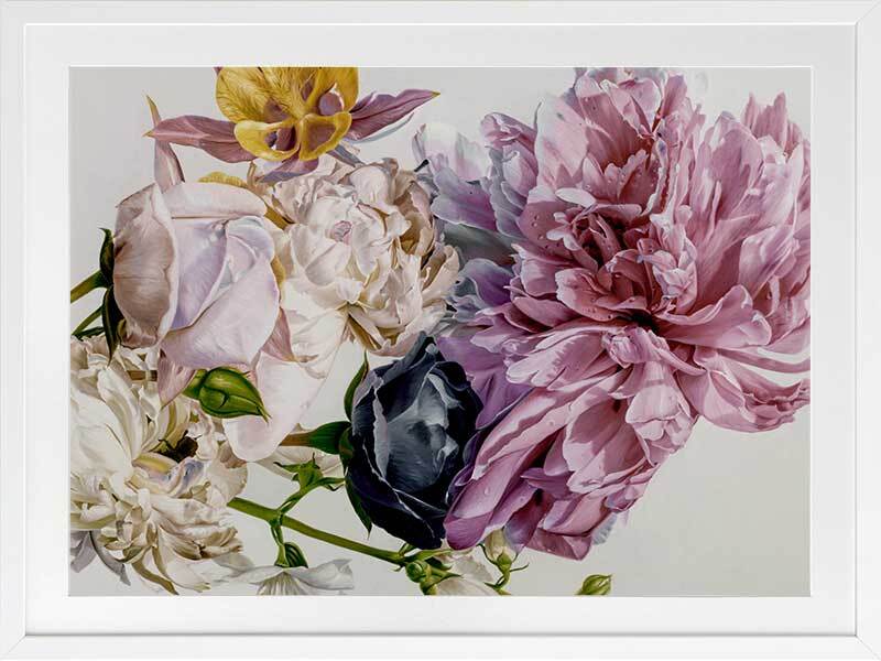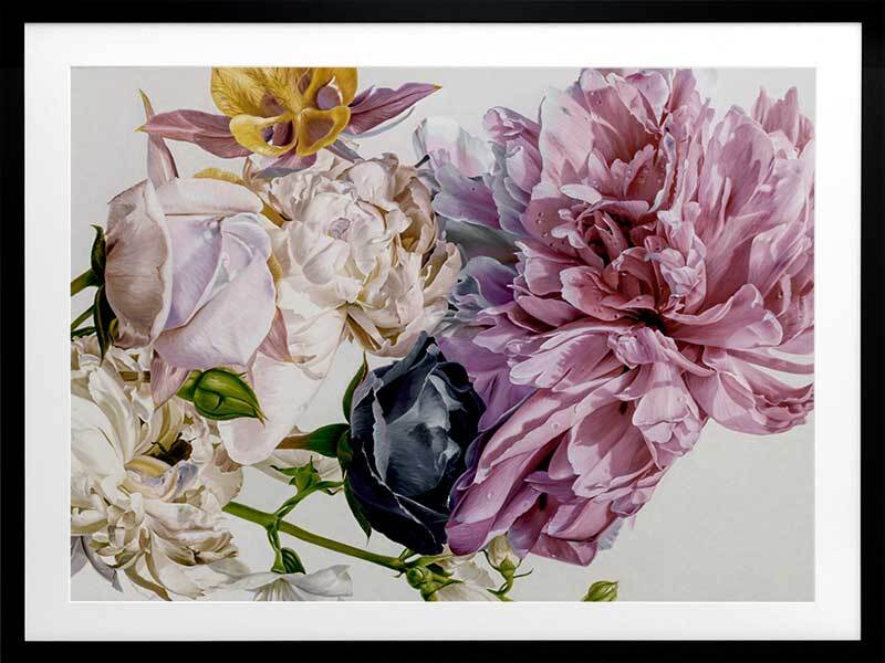 Garden of Eden Framed Print: A striking and feminine hand painted artwork featuring a posy of crushed flowers in a blend of bright and pastel colours. 2020 AUTUMN/WINTER COLLECTION: REVERIE