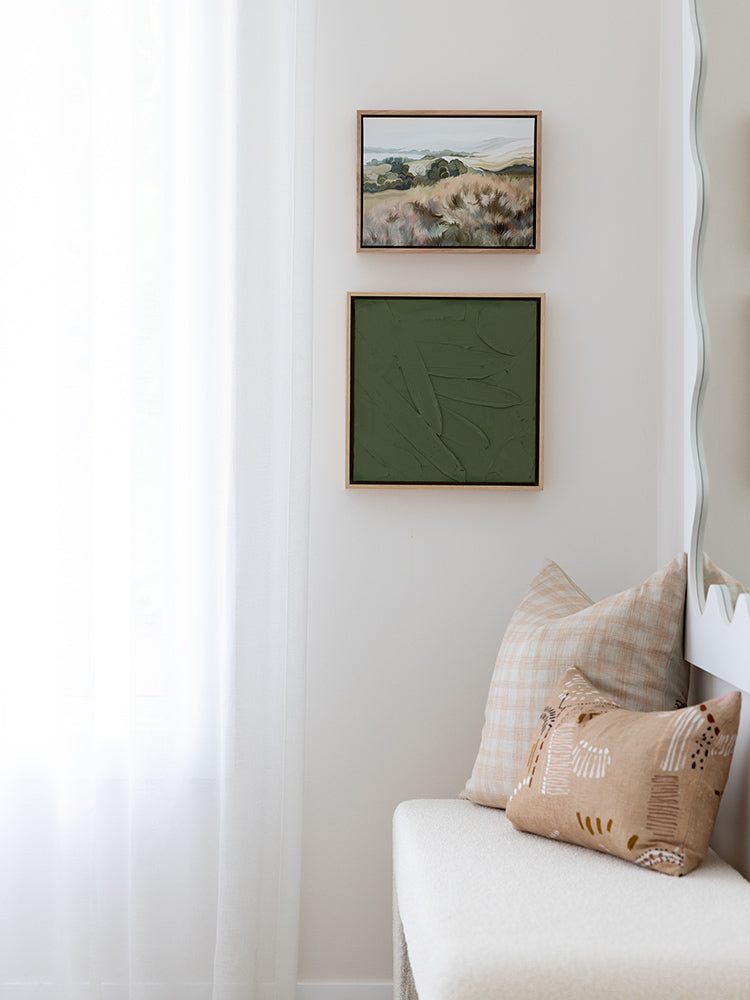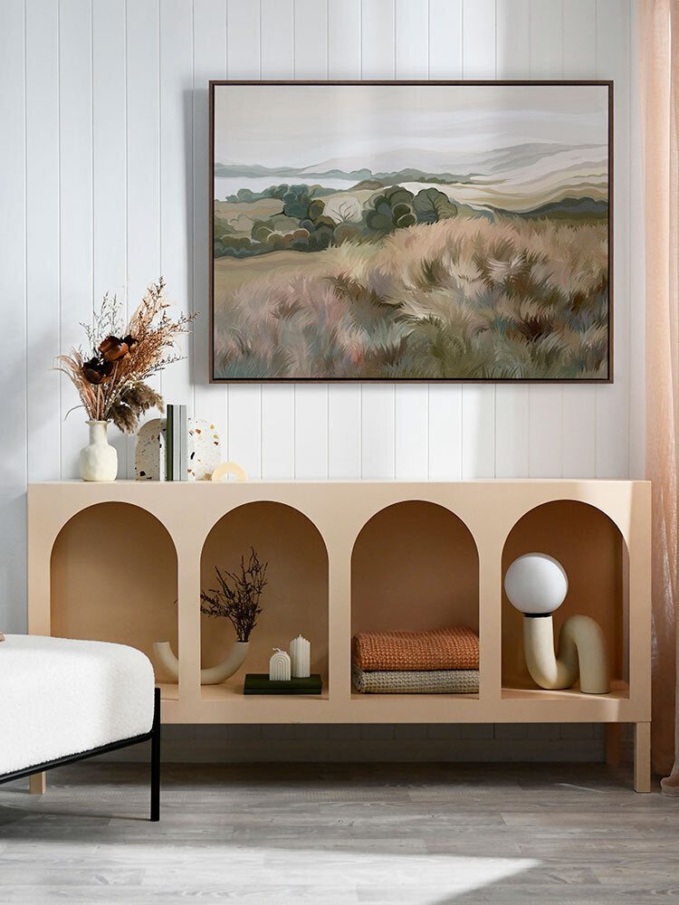 Like daydreaming come to life, our Aussie Dreamscapes Collection will sweep you away into a world of warm summer breezes, crystal blue waters, and afternoon adventures with those you love. An abstract take on native Australian landscapes, this collection uses a softened colour palette and painterly brush strokes for that dreamy, windswept feel to liven up your walls. With light and dark blues and greens, rich orange, hints of purple, and plenty of sandy beige tones, these pieces bring an inviting warmth to any space.