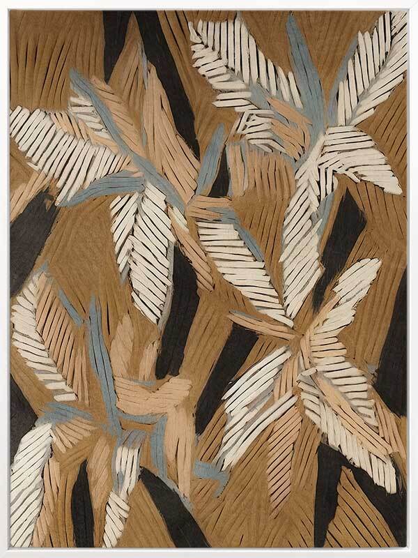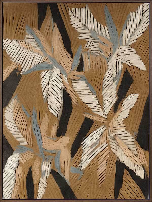 Geometric Gum Leaves II Canvas Art Print - This abstract canvas art is a playful, eye-catching take on eucalyptus leaves, with an array of lines that create an organic geometric look. Perfect for adding some movement and character to your space, this modern art print has a versatile palette of brown, beige, and blue shades. Pair with Geometric Gum Leaves I.