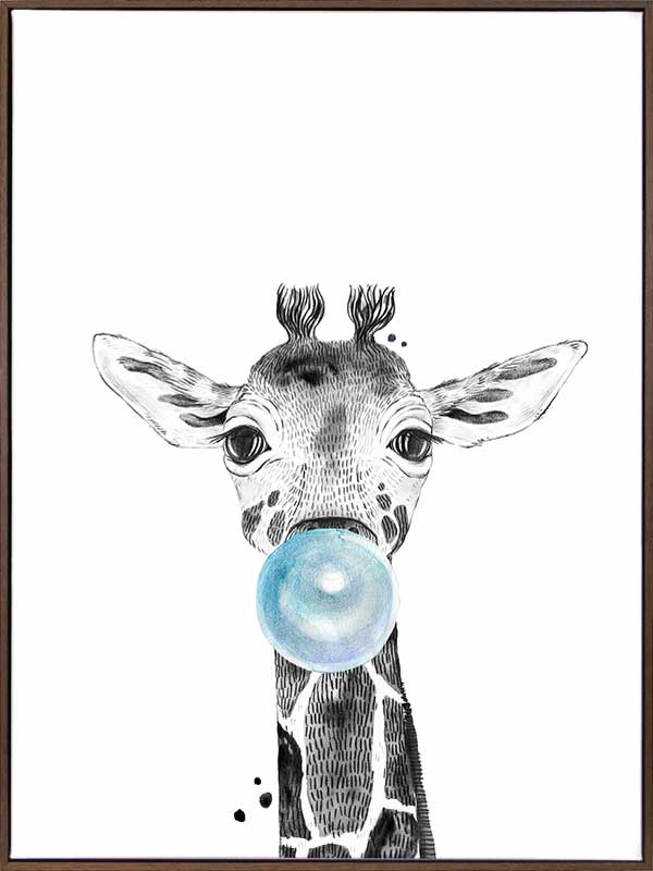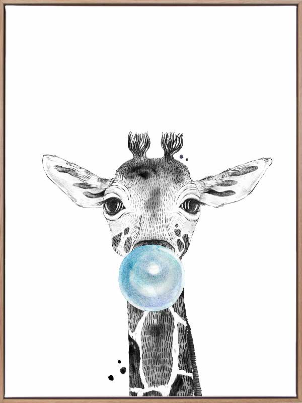 George Giraffe - A black and white illustration of an adorable giraffe with a hint of blue - perfect for decorating a little boy's room.