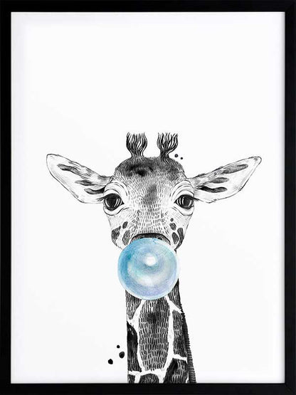 George Giraffe - A black and white illustration of an adorable giraffe with a hint of blue - perfect for decorating a little boy's room.