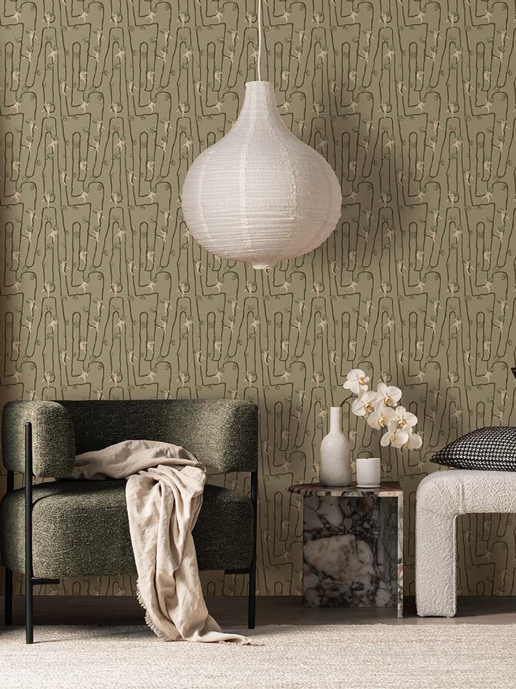 Wallpaper Colour: Giggly Bush Babies Olive Green