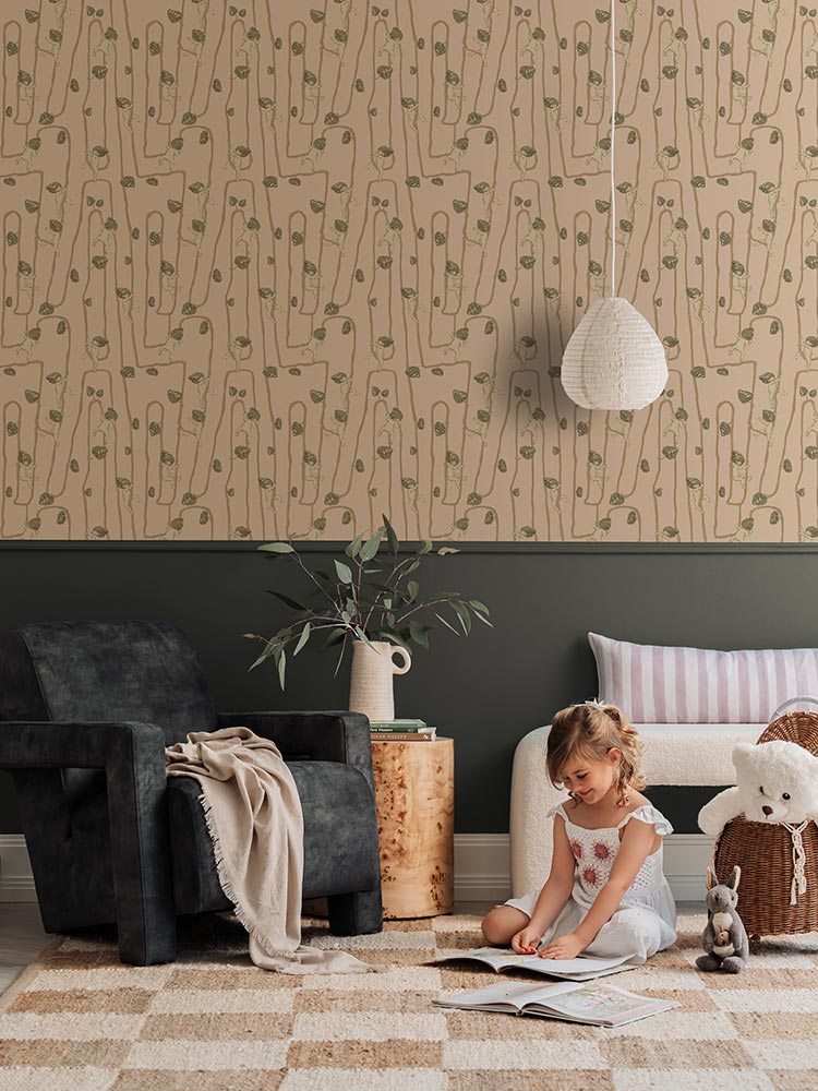 Inspired by May Gibbs artwork from her treasured books, this children’s wallpaper celebrates Gibbs’ Australian legacy with an artful touch. The soft, sketch-like lines and organic movement evoke a sense of adventure, while the versatile colour palette harmonises perfectly with contemporary decor. Ideal for any children’s room, nursery, or family space, this children's wallpaper adds storytelling magic and warmth to your interiors.