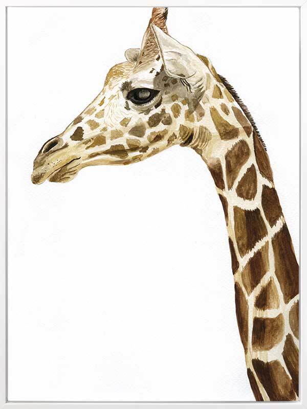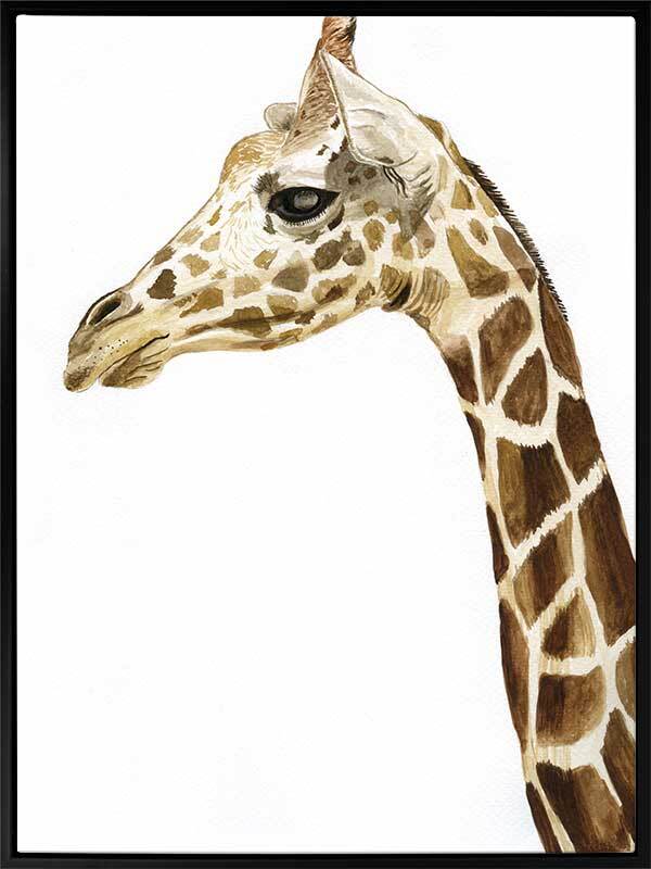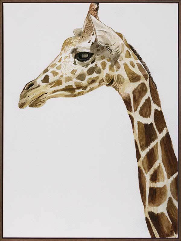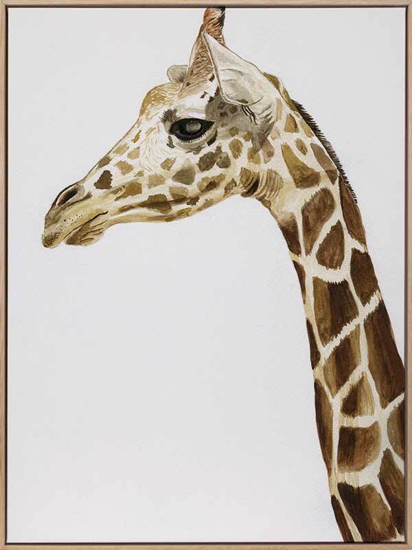 Giraffe 1 Canvas Art Print: Our captivating solo giraffe, hand painted with watercolours, a gentle nature and perfect for nursery or kids space. 2015 SPRING/SUMMER COLLECTION: ALIVE
