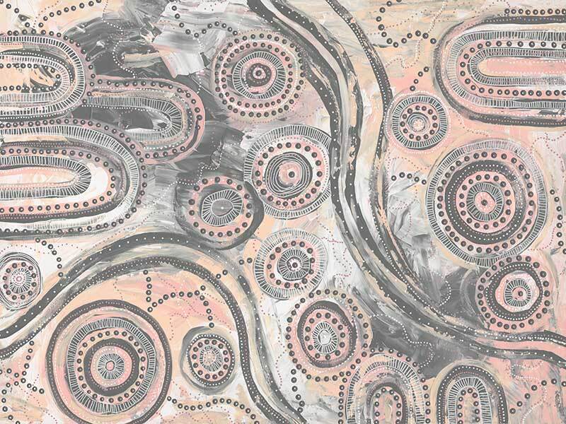 This artwork represents the taking of the rightfully owned land of the Wiradjuri peoples. It shows the Murrumbidgee River and both the North side of the river and what is now Wagga Wagga City. These places are represented in the circles. Represented to the right of the image in the hills, are the generations of Indigenous Aboriginal peoples who have lived upon this land, and that were displaced. Each hill represents one generation. On the left of the piece, is the founding generation of Europeans. The colours were intentionally chosen to reflect the sadness of the Indigenous Aboriginal people, and the mourning of them. It is an intentionally dull piece to show the grief of the Wiradjuri peoples and all of the other mobs who faced displacement upon white man's arrival.