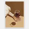 Glass of Shiraz Unframed Art Print - The ultimate artwork for every red wine lover. This modern art print will transport your space to a French holiday, wine tasting in Bordeaux, glass of Shiraz in hand, glamorous puffy sleeve in frame. The palette is simple and versatile for any interior style, with shades of brown and beige, as well as a deep berry red tone for the glass of wine.