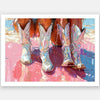 Glittering Gem Boots Poster - Whether it's a pair from Lucchese or they're your fave glittering cowboy boots, slip them on and get excited for endless memories of your dream Taylor Swift concert. This poster of two Swifties sitting together combines glimmering silver shades with pink and blue hues to create a striking look, perfect for paying homage to your Swiftie roots.