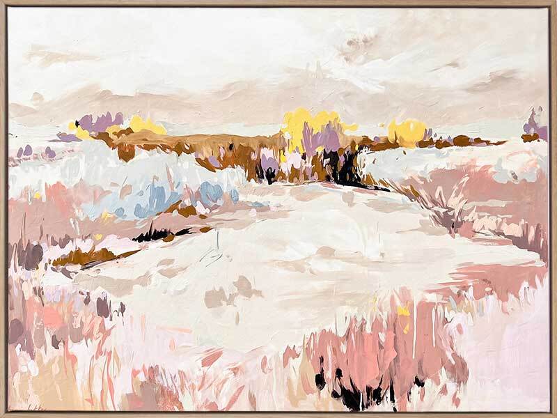 Glory Canvas Art Print - In this painting, the essence of a sun-bleached landscape is masterfully captured. This piece is awash with soft strokes of cream, blush, and subtle earth tones, creating an inviting and calming presence, ideal for bedroom artwork where relaxation is paramount.