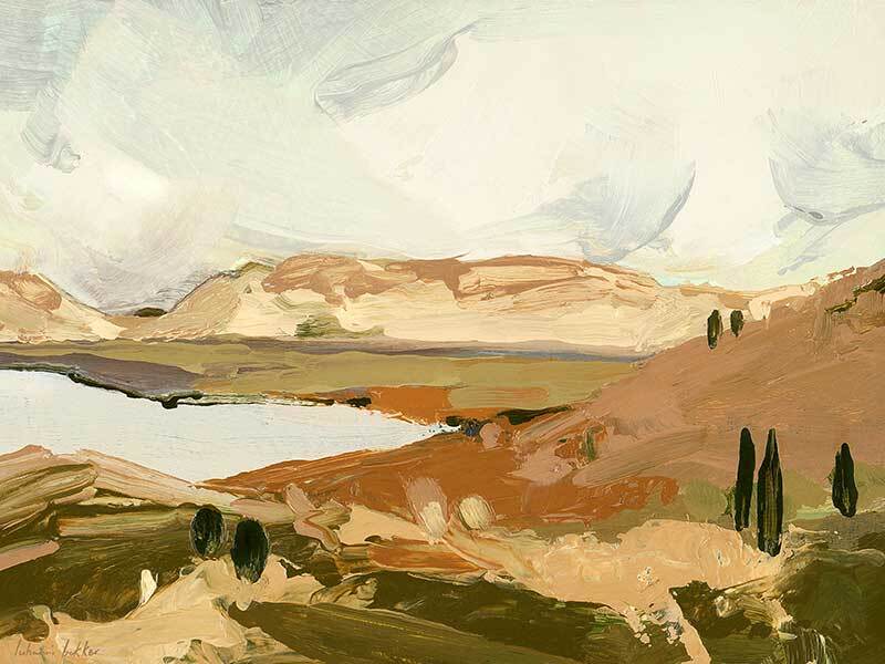 An ode to every globetrotter at heart, this collection features snapshots of various landscapes, capturing their natural beauty with painterly brush strokes and an impressionist flair. With a gentle touch, these pieces bring different skyscapes, valleys and fields to life using a blend of neutral beige and brown shades, with soft pinks, blues, oranges, and greens. Several abstract pieces are added to the mix for a complementary feel.