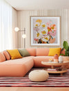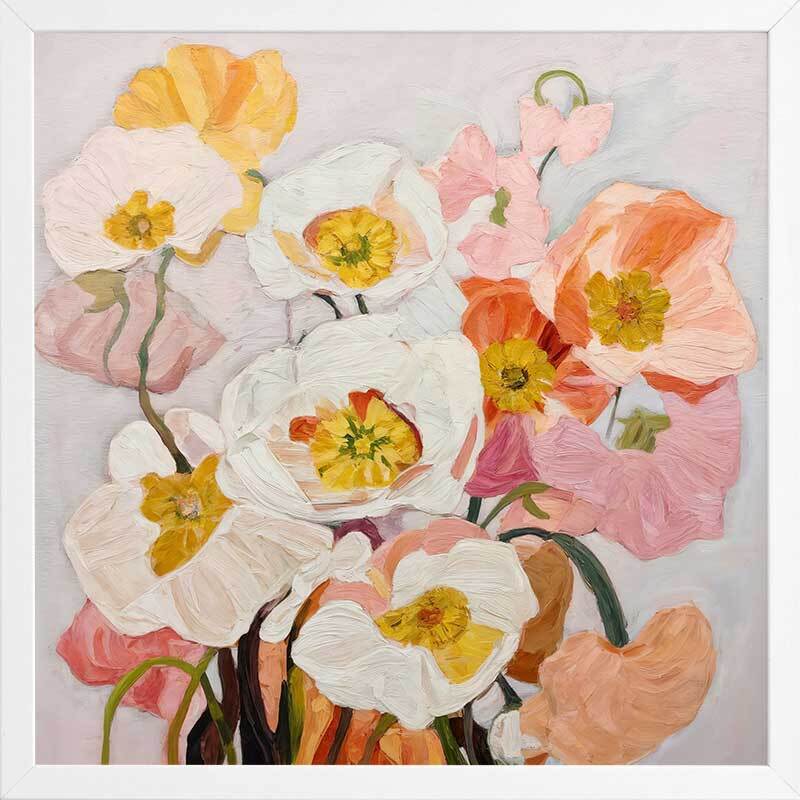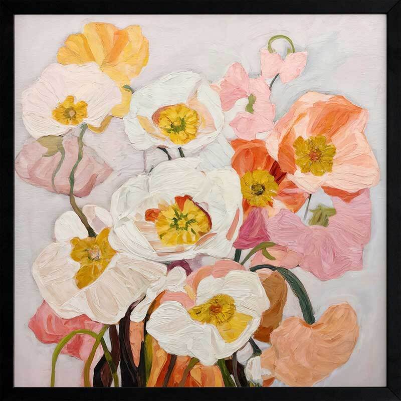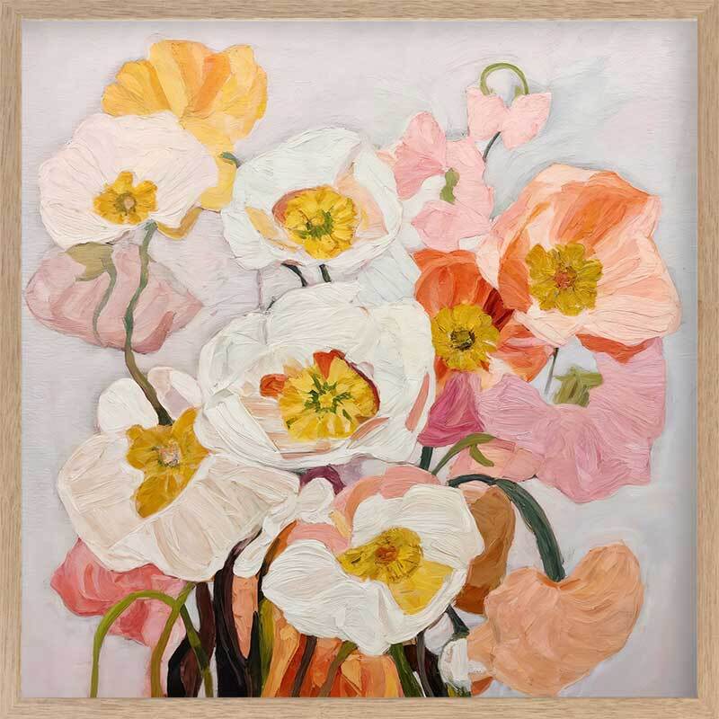Good Morning I Framed Art Print - It's always a good morning with this vibrant, joyful floral artwork featuring a painterly style with visible brush strokes. This bouquet of flowers jumps off the canvas, basking your space in a warm happiness, featuring comforting shades of pink, orange, yellow, and off-white. Pair with Good Morning II.