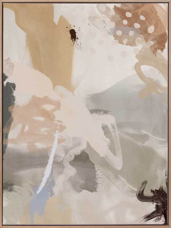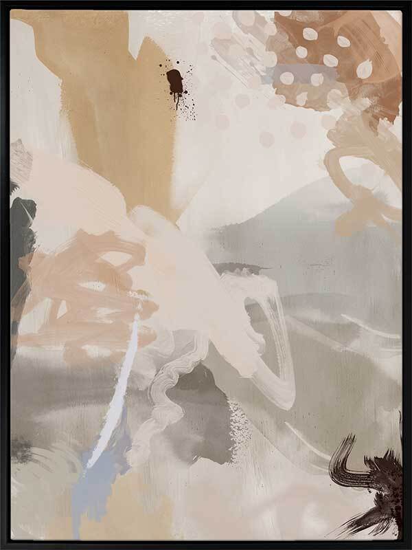 Good-Natured Canvas Art Print - Chaotic in its composition, yet calming in its colours, this abstract artwork makes the perfect statement in your space without overpowering other pieces, with visible brush strokes for added texture. A soft colour palette includes grey tones, beige, dark blush, and hints of black and blue.