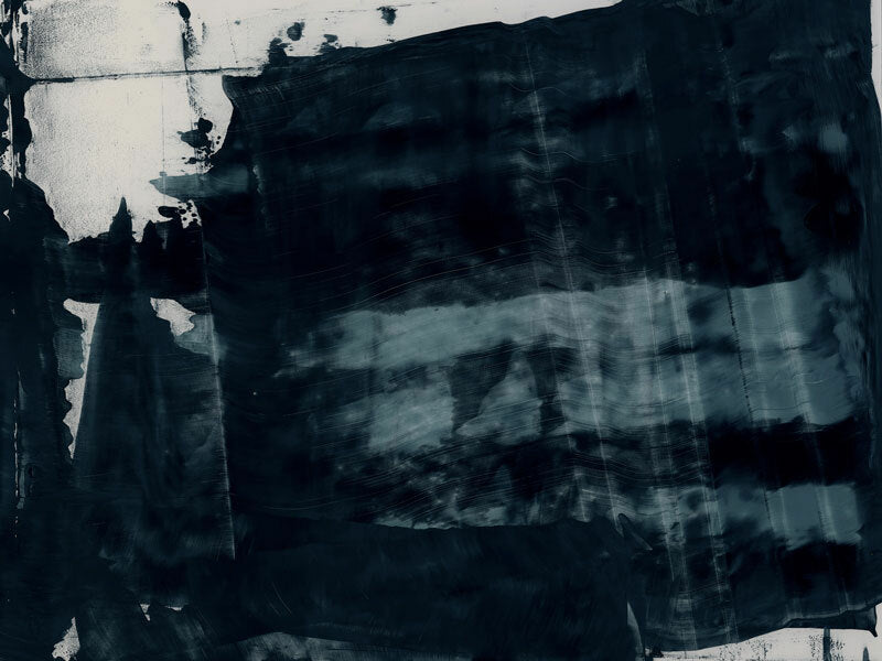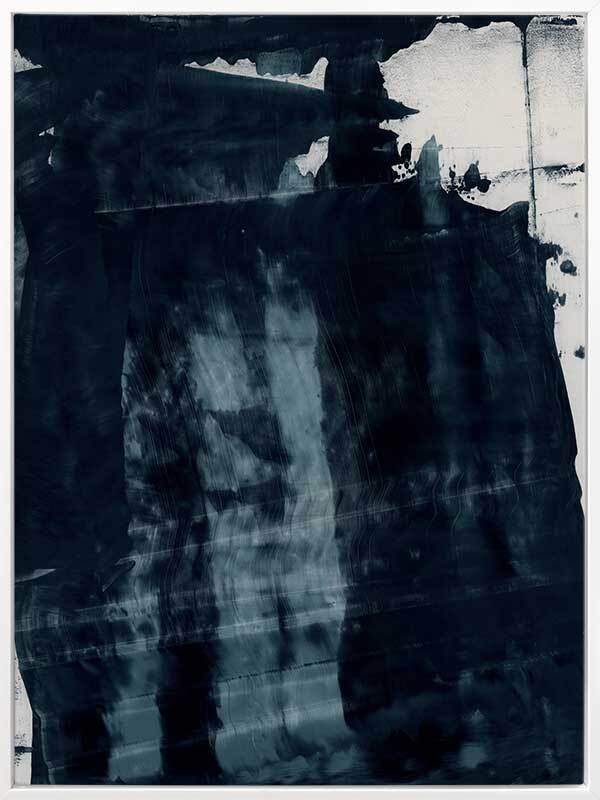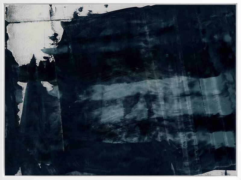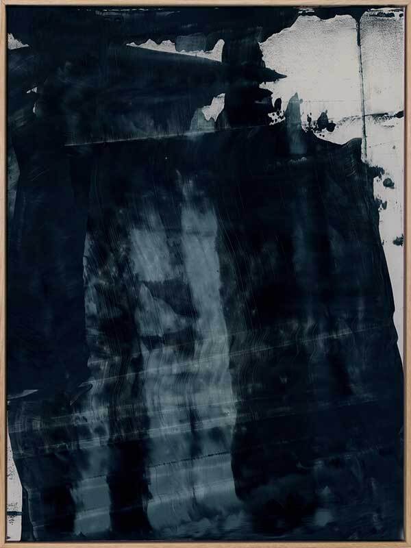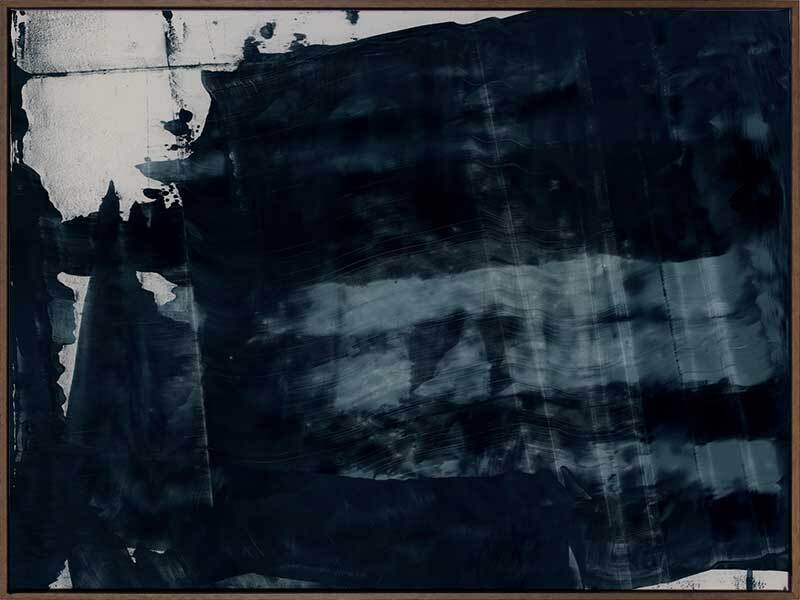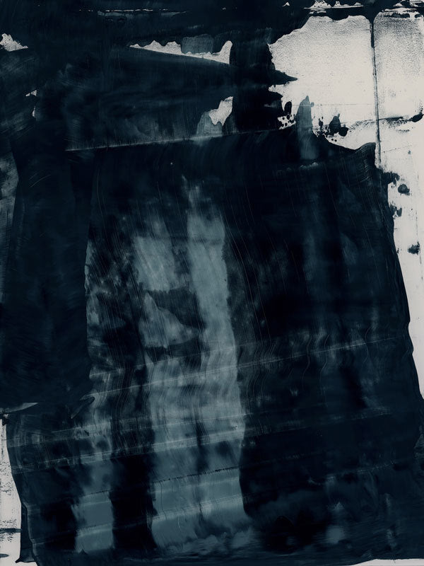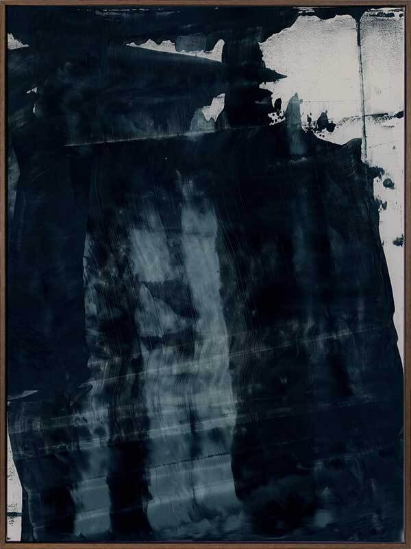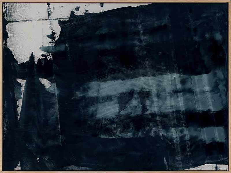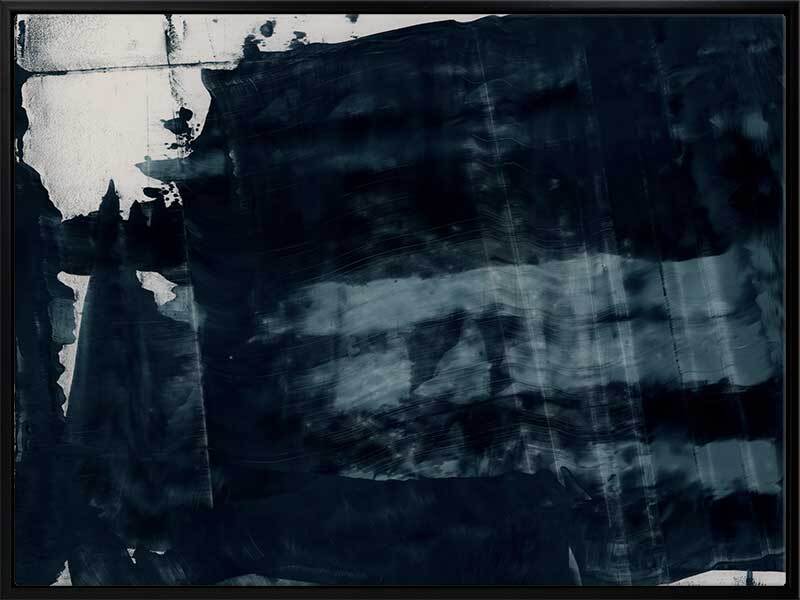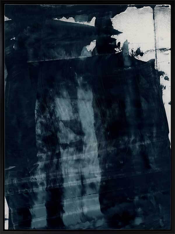 Gralyn Canvas Art Print: An abstract artwork featuring broad, linear, squeegee strokes in a smoky blue palette with flecks of navy. Pairs with Pepper Tree. 2019 AUTUMN/WINTER COLLECTION: ODYSSEY