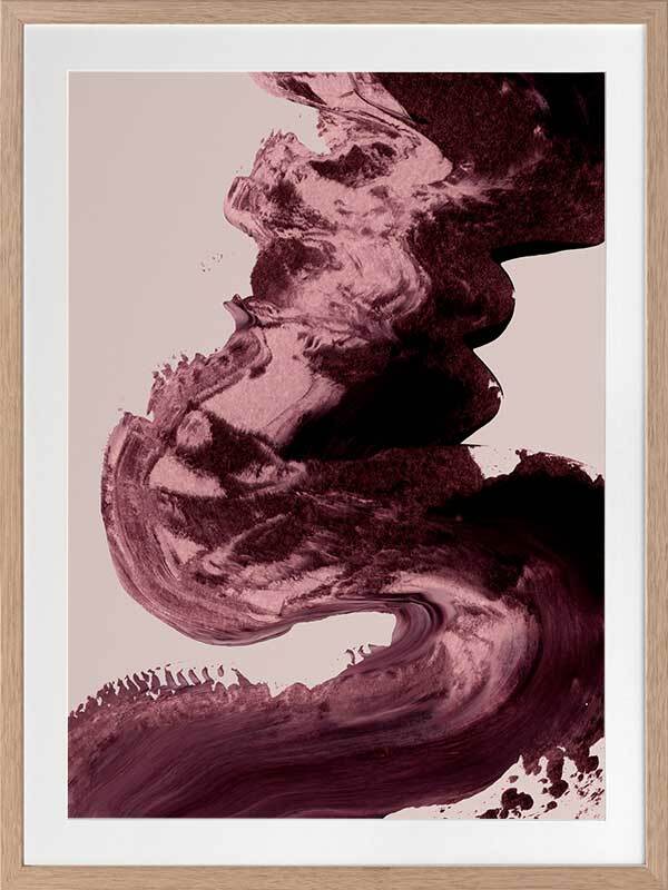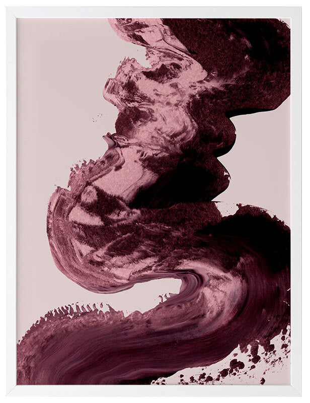 Grand Gesture Framed Print: A moody abstract artwork featuring a winding, textured burgundy paint stroke on a nude background. Pairs with Sleight of Hand. 2018 AUTUMN/WINTER COLLECTION: CONTINUUM