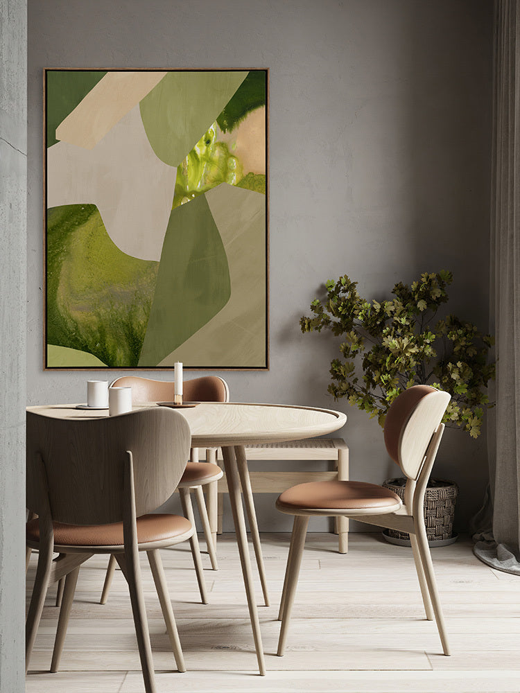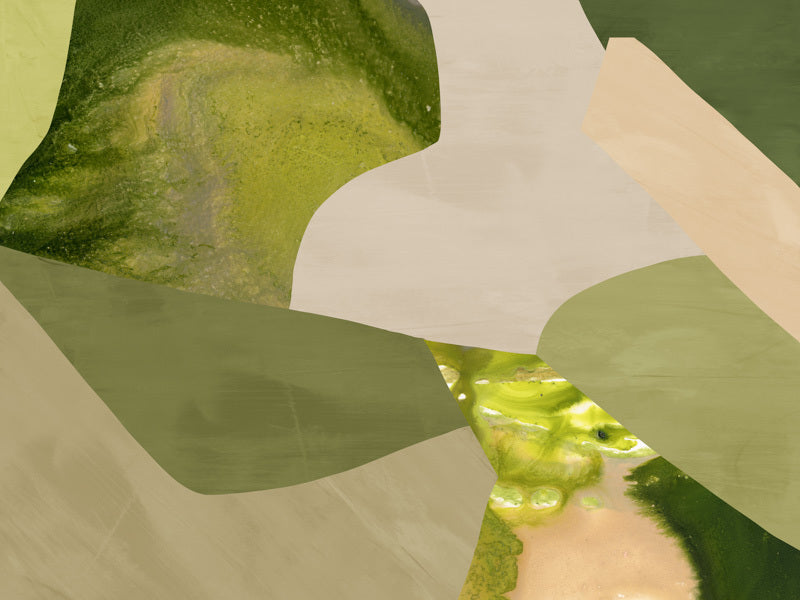 Green Gables II Canvas Art Print: A bright abstract artwork featuring chartreuse, green and beige shapes and gorgeous marbled elements. Pairs with Green Gables I. 2020 AUTUMN/WINTER COLLECTION: REVERIE