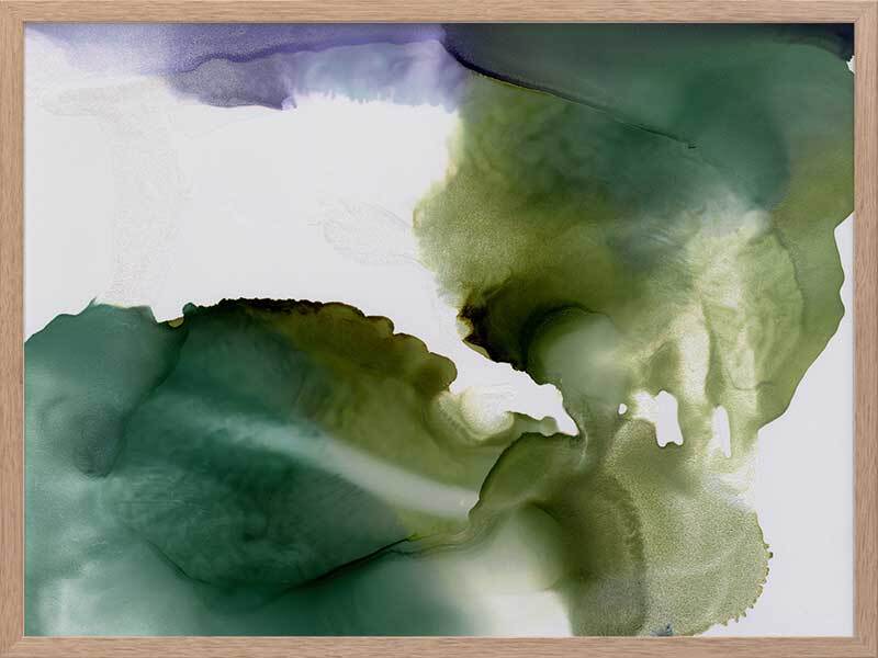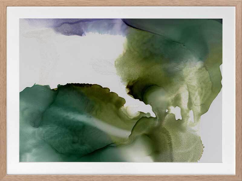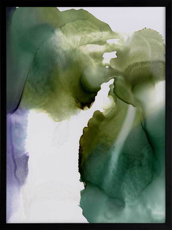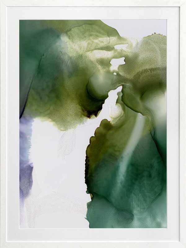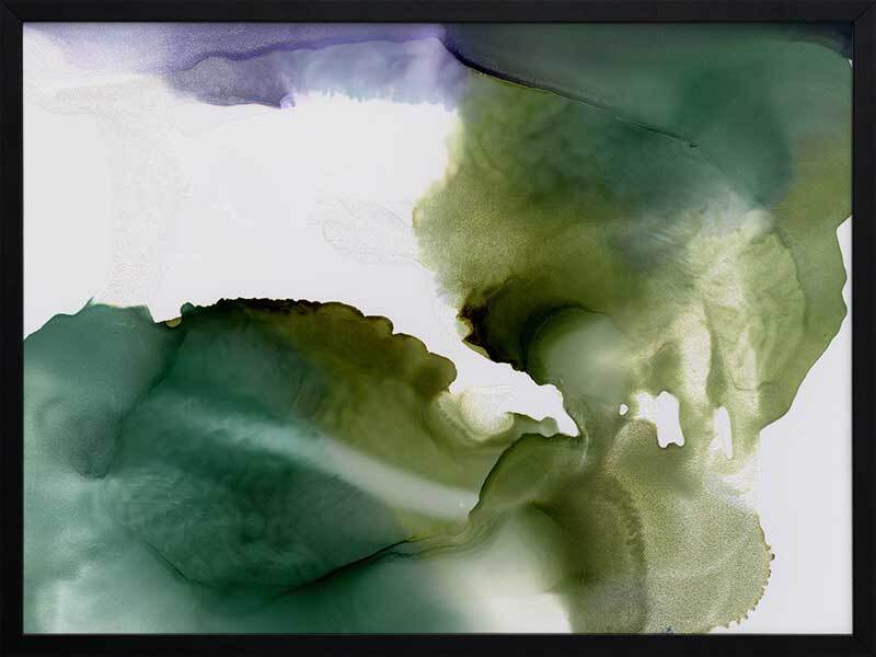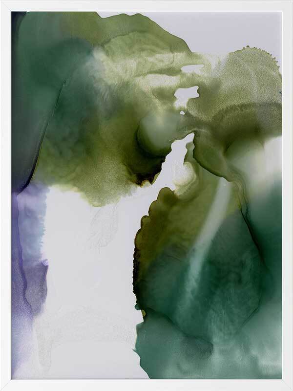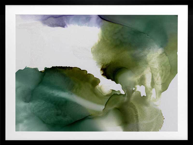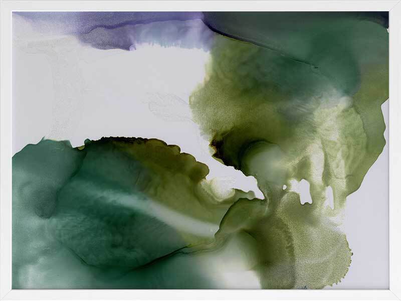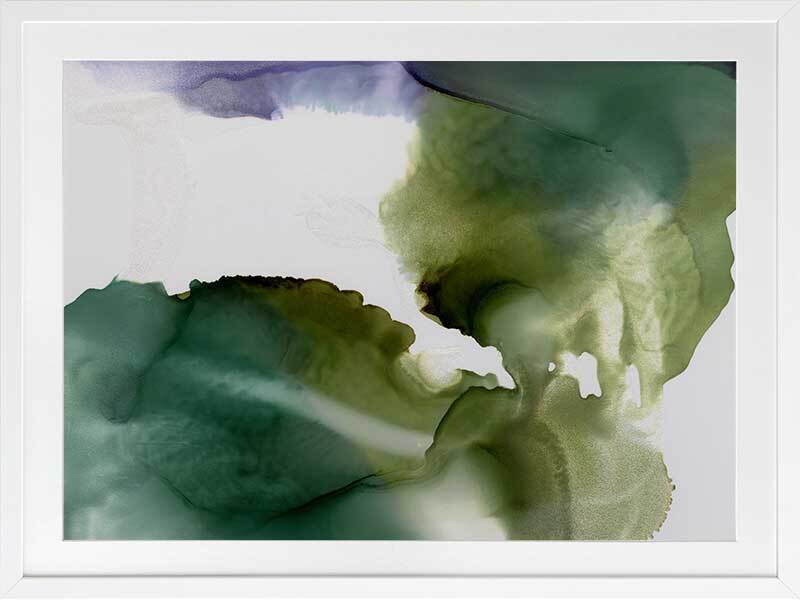 Green Glacier I Framed Print: An artwork created with alcohol inks in a muted green colour palette. Pairs with Green Glacier II. 2020 AUTUMN/WINTER COLLECTION: REVERIE