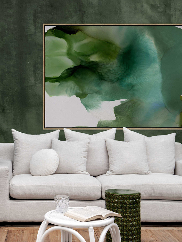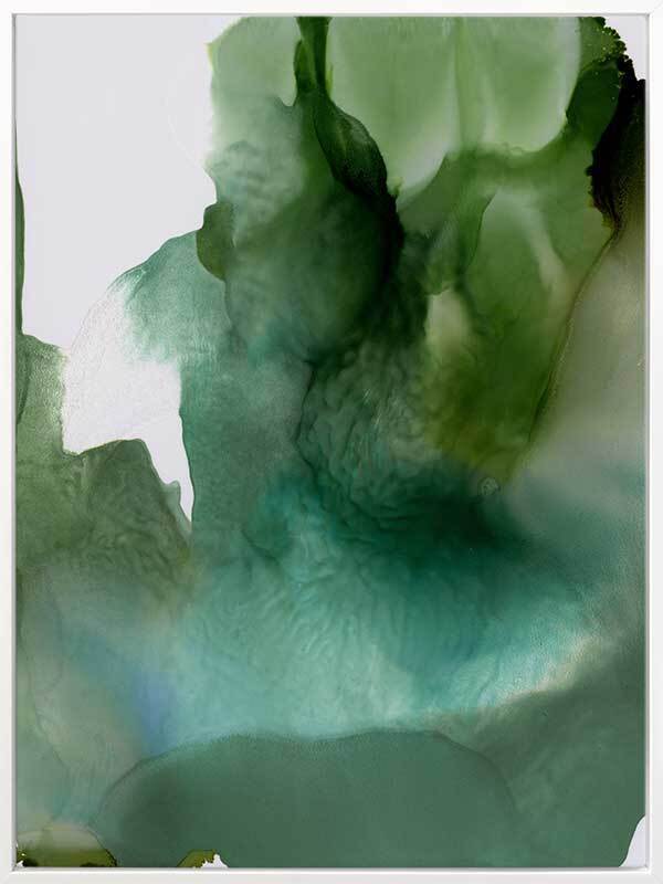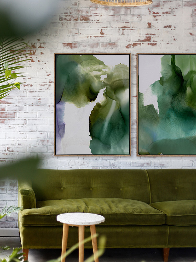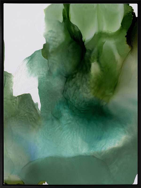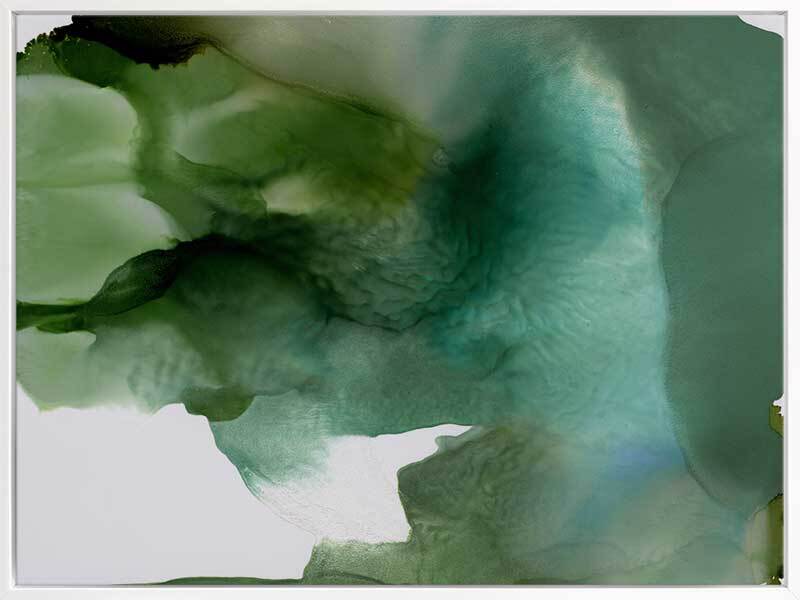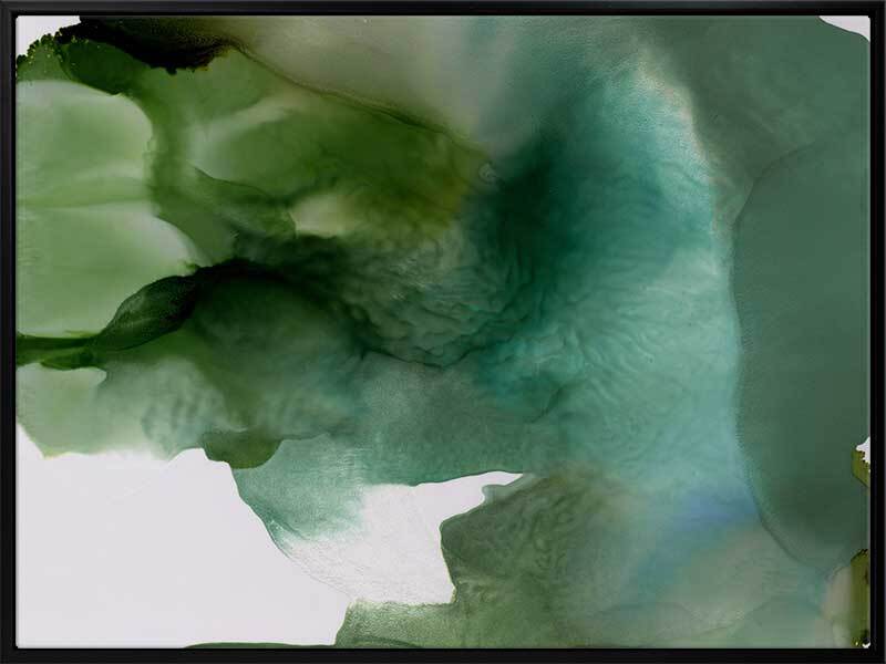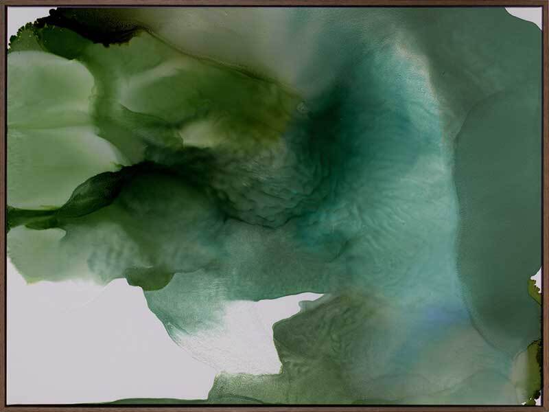 Green Glacier II Canvas Art Print: An artwork created with alcohol inks in a muted green colour palette. Pairs with Green Glacier I. 2020 AUTUMN/WINTER COLLECTION: REVERIE