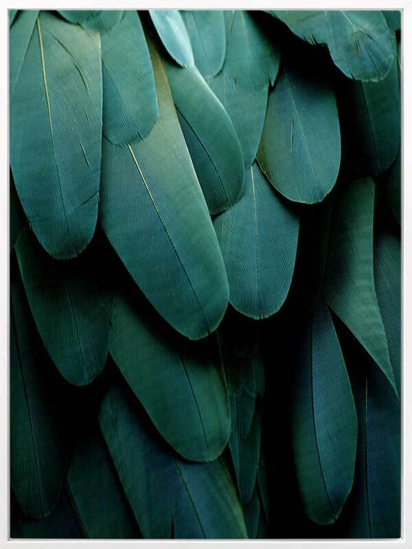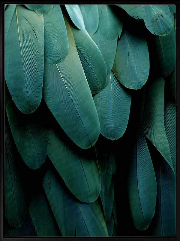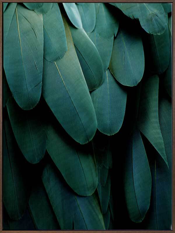 Green Jay Canvas Art Print: A close-up photographic image of emerald green feathers. 2018 AUTUMN/WINTER COLLECTION: CONTINUUM