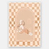 Growing Up Unframed Art Print - She might not fit on your shoulders as she used to, but that won't stop her. A mother lovingly embraces her daughter from behind, eternally proud at the young woman she's growing to be. A warm golden undertone within the soft peach and light beige palette means this piece works with both neutral and colourful spaces. A wonky checkerboard pattern in the background brings a laidback, comforting feel, with silhouette imagery in the centre to capture a perfect moment in time.
