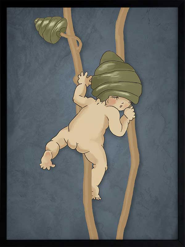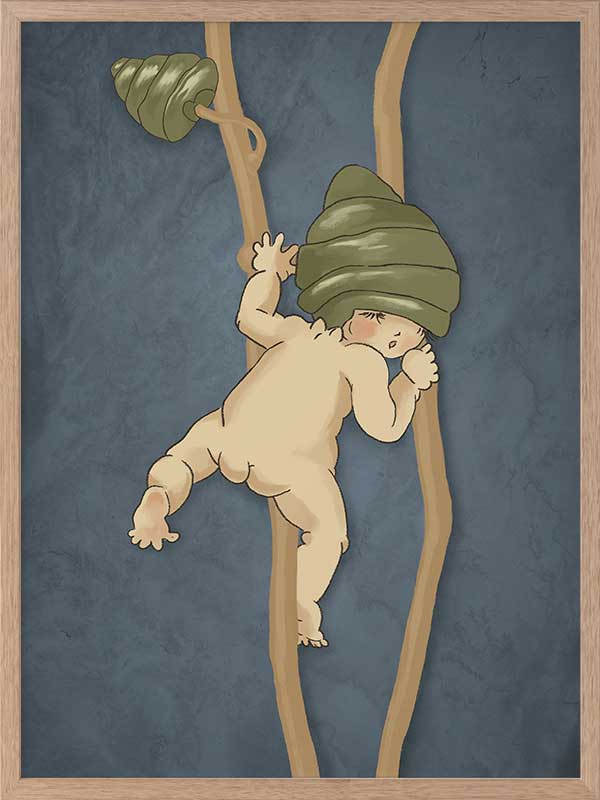Perfect for a nursery, as children's bedroom art, or any corner needing a touch of wonder, this piece evokes the charm of discovery and the playful spirit of the natural world. Drawing inspiration from May Gibbs’ iconic Gumnut Babies, it whispers tales of exploration and innocence.