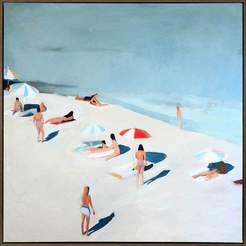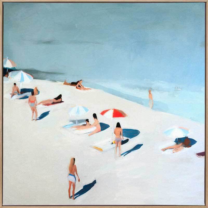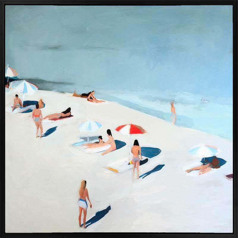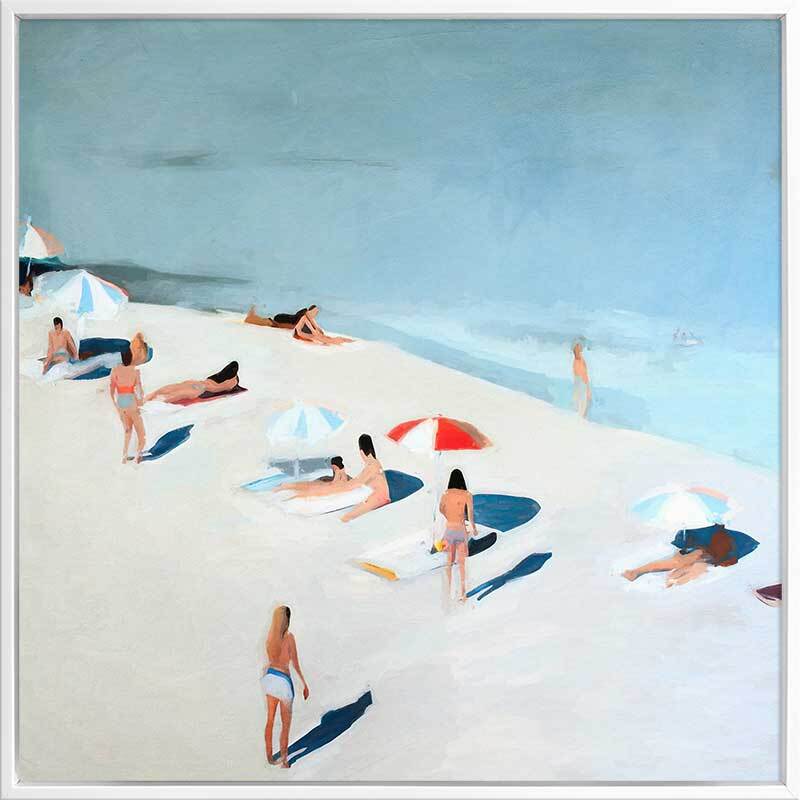 Hamelin Beach Canvas Art Print - Bring all the calm vibes to your space with this simple, yet striking coastal wall art - a snapshot from Australia's Hamelin Beach. Featuring a crowd of beachgoers, soaking and bronzing, white sands and crystal blue waters, this beach print is perfect for anyone who loves modern art prints with a coastal twist. Palette includes blue, beige, and red tones.