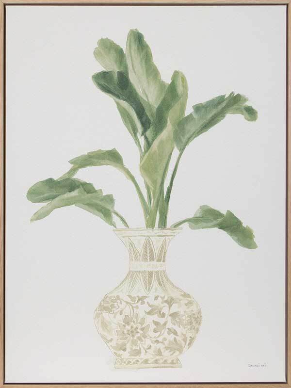 Hamptons Holiday I Canvas Art Print - The epitome of Hamptons style, this warm still-life artwork features an arrangement of banana palm fronds in a sepia-toned ginger jar. Matches with Hamptons Holiday II, III and IV.