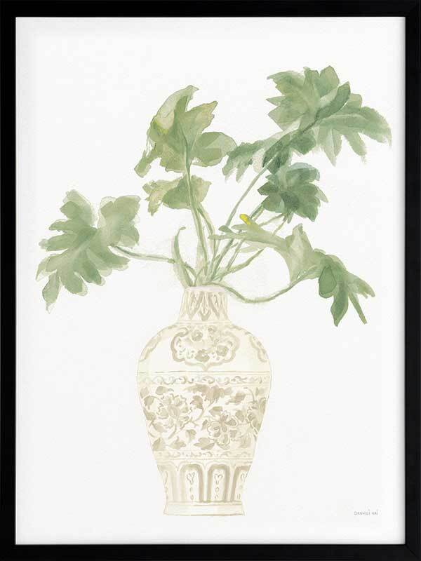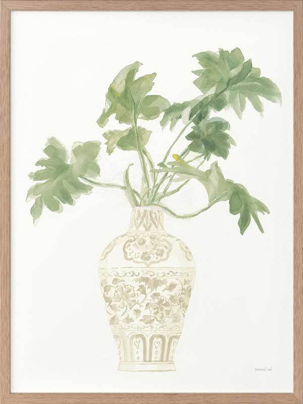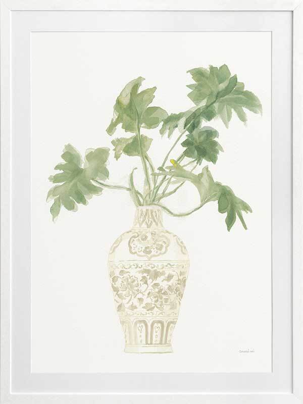 Hamptons Holiday III Framed Art Print - The epitome of Hamptons style, this warm still-life artwork features an arrangement of monstera foliage in a sepia-toned ginger jar. Matches with Hamptons Holiday I, II and IV.