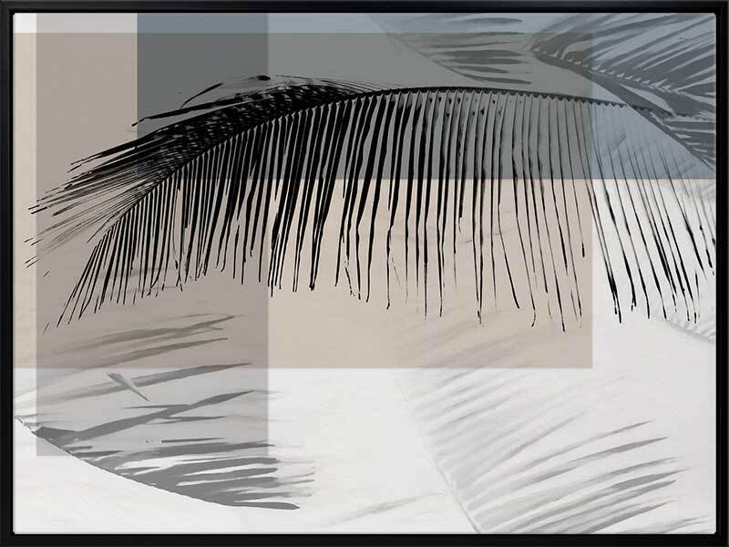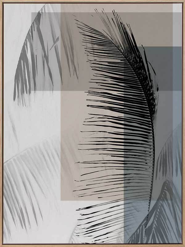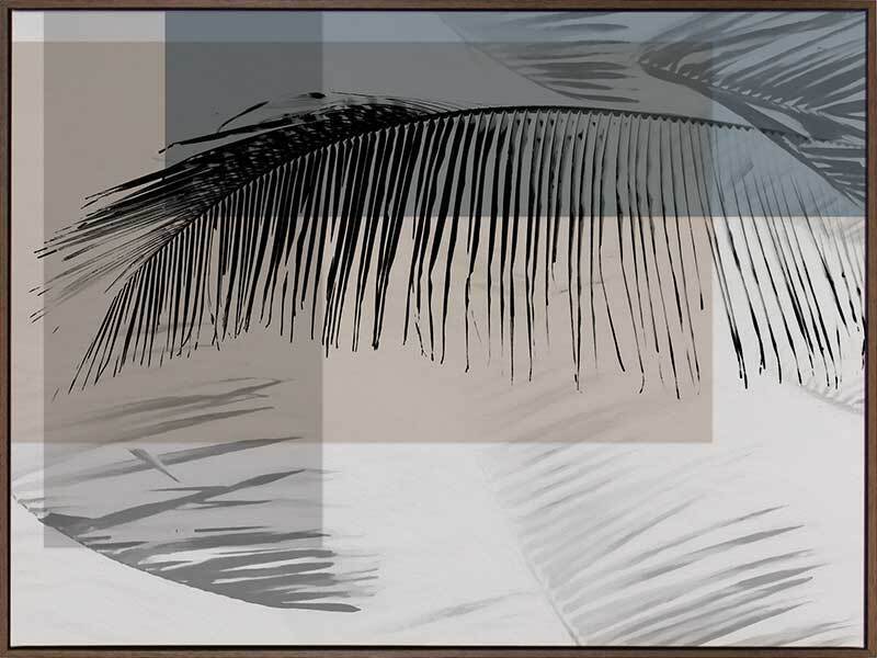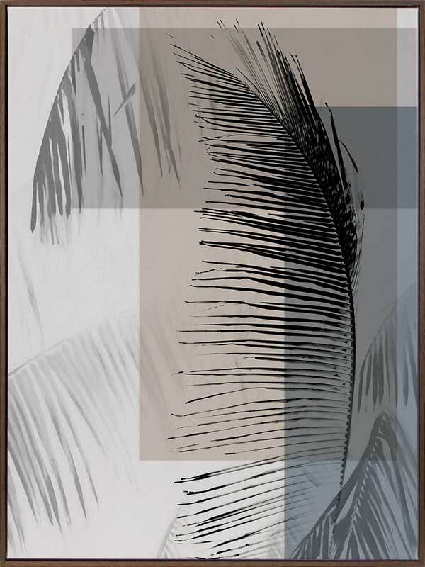 Havana II Canvas Art Print: A grungy, tropical themed artwork featuring a palm silhouette, and a blue-grey and cream colour palette. Pairs with Havana I & Havana III. 2018 SPRING/SUMMER COLLECTION: REMINISCE