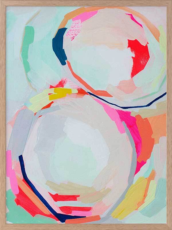 Britt Bass for Urban Road Thick, luscious strokes and bright pockets of colour are the enthralling mark of this imaginative and abstract painting. Vivid and alluring in its cheerful shades and rounded forms, this print is ideal for any modern home, suiting living spaces and even children's room well.