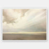 Heavenly Hues Unframed Art Print - A vast stretch of sky, bathed in soft tones of cream-toned white and beige, overlooks a bare field, seamlessly blending with streaks of light blue and yellow. This delicate landscape wall art evokes a profound sense of serenity, with a minimalist design that suits any interior style.