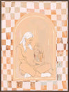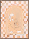 Hello, there Canvas Art Print - That glorious anticipation, waiting and wondering who the person will be that is soon to arrive, getting ready to welcome them into the family with loving, open arms. This touching piece uses a warm, golden orange palette with hints of brown and light beige for an overall neutral look. A wonky checkerboard pattern in the background brings a laidback, comforting feel, with silhouette imagery in the centre to capture a perfect moment in time.