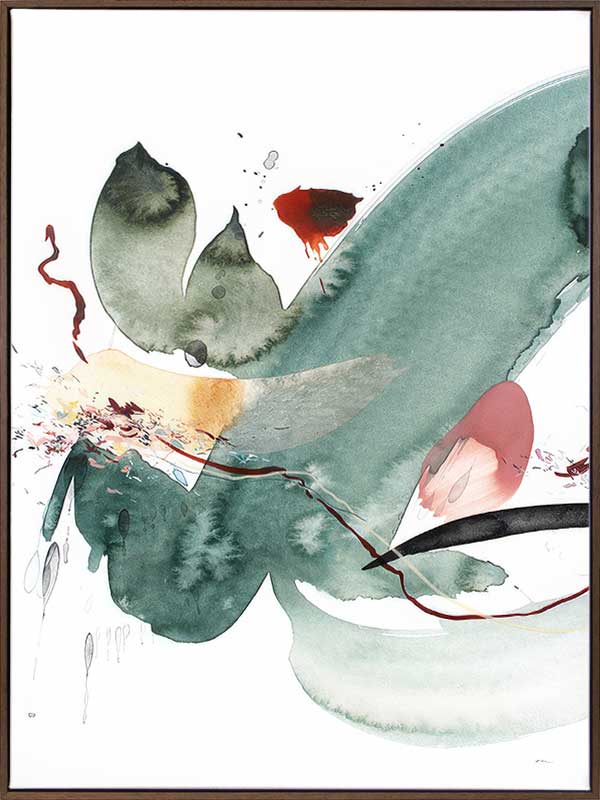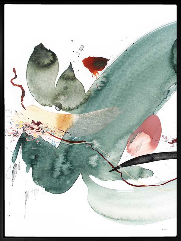 Hidden Cove 3 Canvas Art Print - Christina Kwan’s Hidden Cove 3 is an expressive abstract artwork characterised by lush emerald greens, rich reds, and playful hints of blush and ivory. Fluid shapes and spontaneous strokes evoke a hidden coastal sanctuary, making this contemporary abstract wall art ideal for spaces craving vibrant sophistication, energy, and artistic charm.