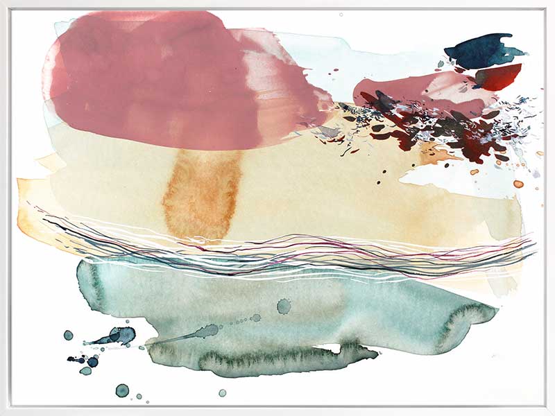 Hidden Cove 6 Canvas Art Print - This abstract wall art print by Christina Kwan blends abstract coastal charm with playful, vibrant colours. Featuring layered strokes in teal, blush pink, warm amber, and deep blues, this artwork creates a calming yet spirited visual landscape. Ideal as contemporary abstract wall art, it brings fresh colour and dynamic sophistication to stylish interiors.