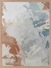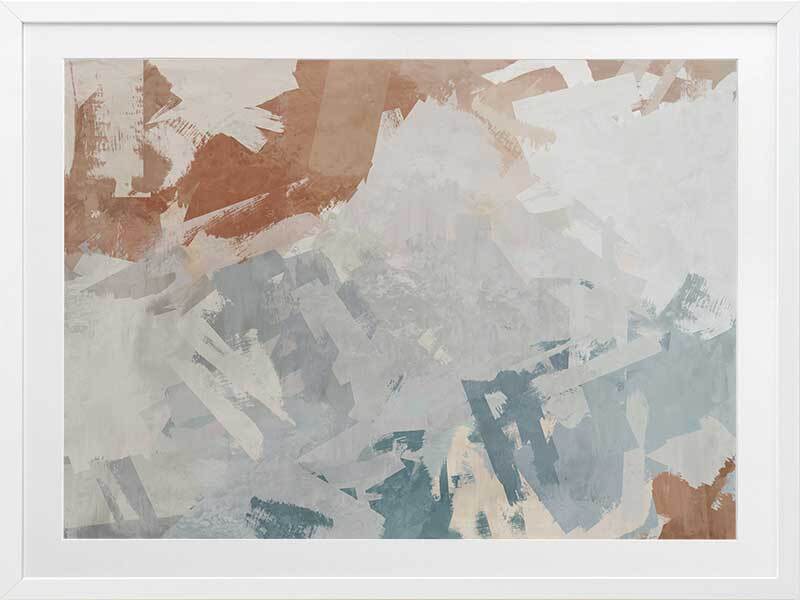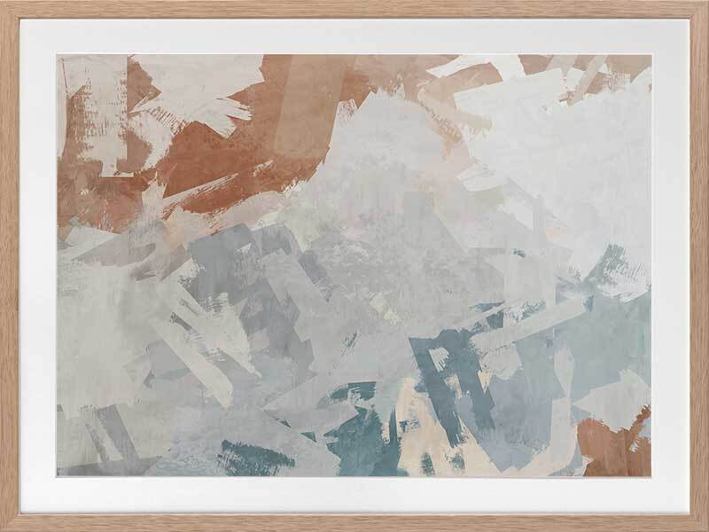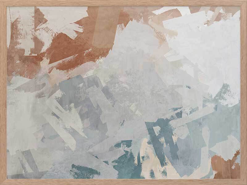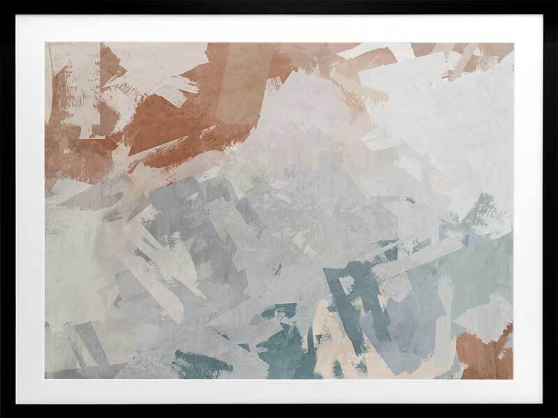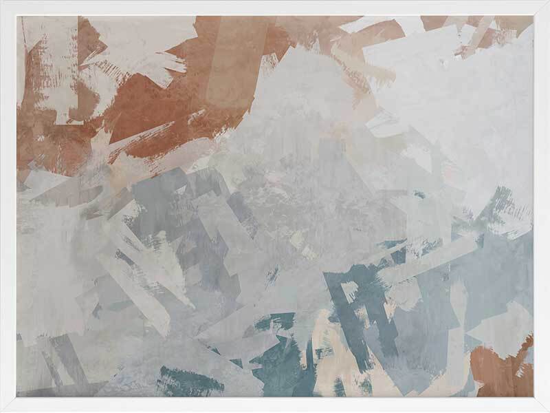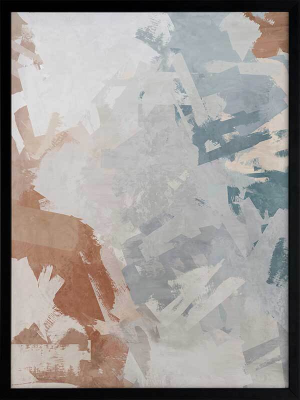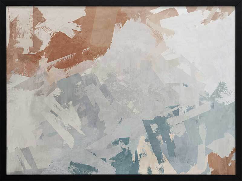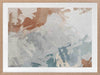 Humbled Hush Framed Art Print - Experience the perfect fusion of subtlety and landscape in this captivating abstract artwork, designed for those who appreciate the beauty of serene landscapes. Transport yourself to a mesmerizing birds-eye-view of rocky waters with this moody masterpiece. The intentional chaos of brushstrokes creates a dynamic interplay over a flowing river of blue hues, evoking a sense of tranquility. The soft and serene atmosphere it brings to your space is enhanced by a versatile palette of warm brown, light grey, and muted blue shades, seamlessly blending with any interior style. Immerse yourself in the captivating allure of this artwork, as it captures the essence of nature's sublime beauty and adds a touch of serenity to your surroundings.