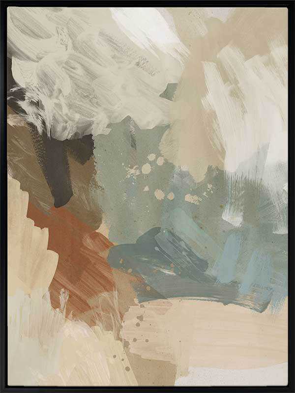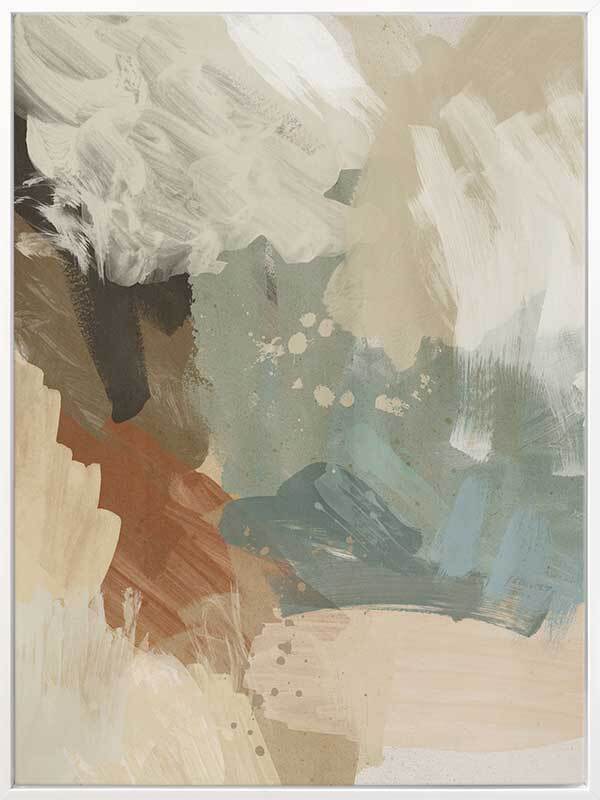 Hush Canvas Art Print - Chaotic in its composition, yet calming in its colours, this abstract artwork makes the perfect statement in your space without overpowering other pieces, with visible brush strokes for added texture. A soft colour palette includes a blend of beige and brown tones, with blue and sage green.