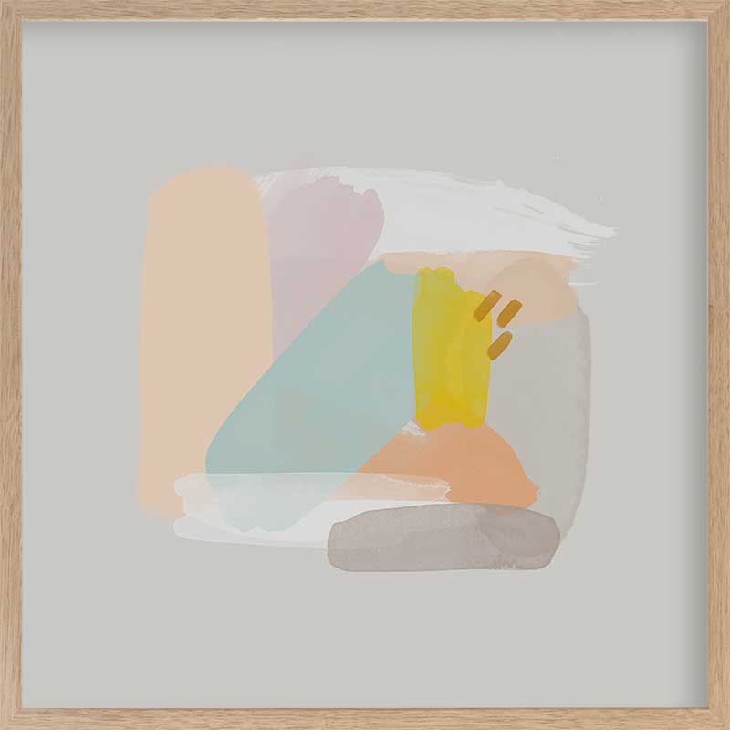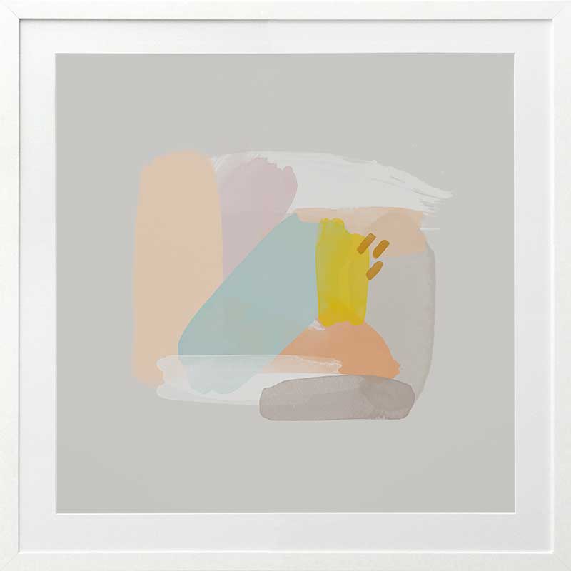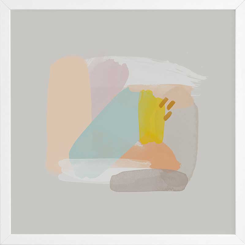 Idaho Framed Art Print - A calming abstract piece featuring a rainbow of pastel strokes of colour.