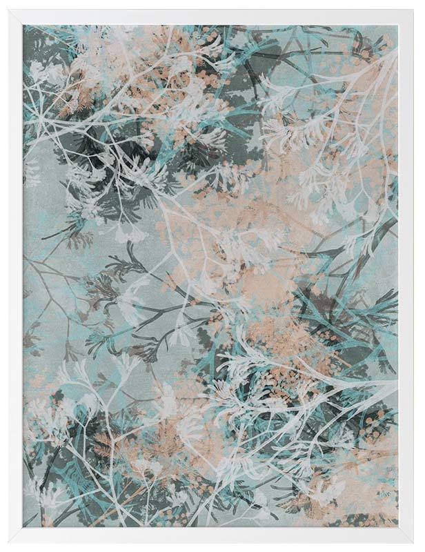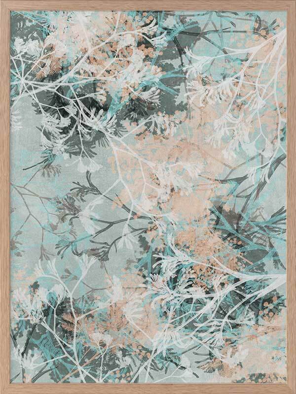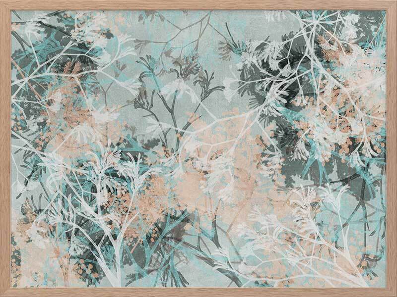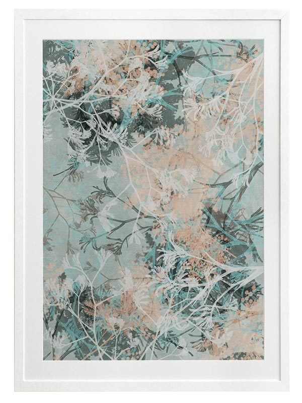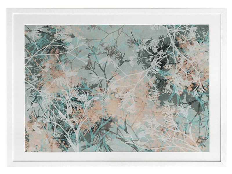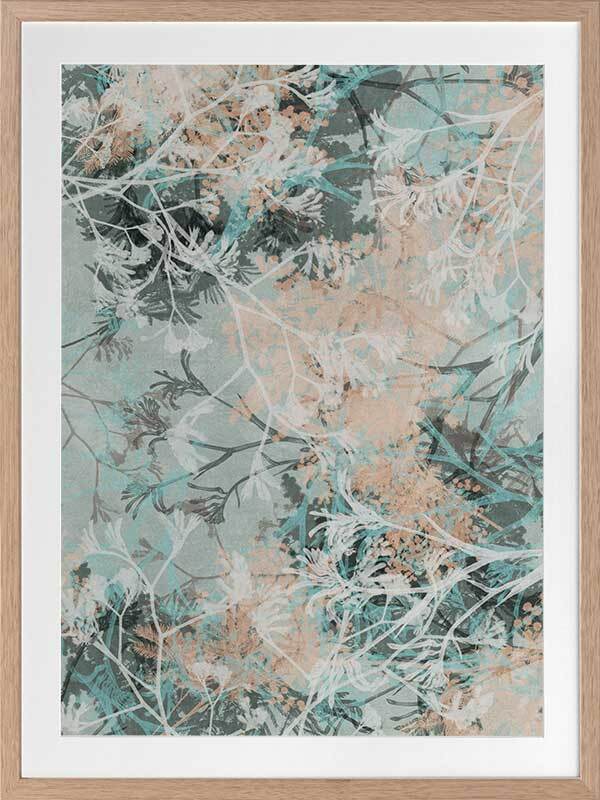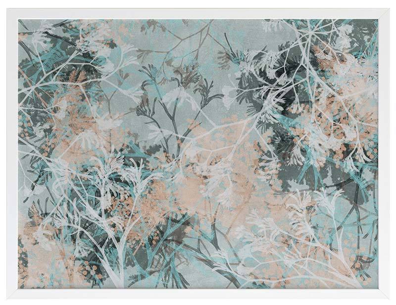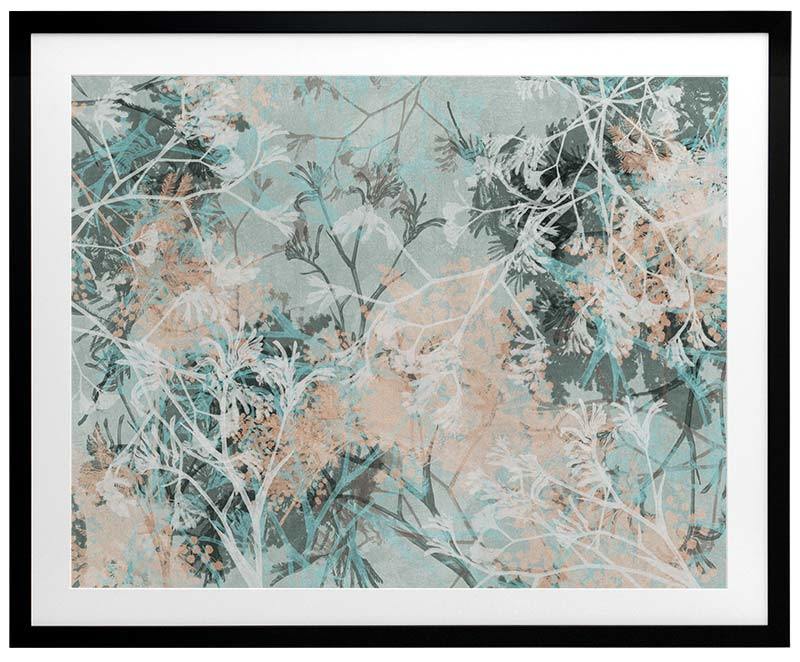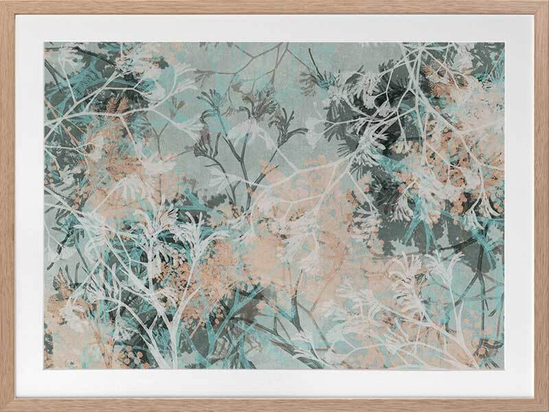 Impression I Framed Print: Overlapping Australian botanical outlines in green, blush and smoke shades. Pairs with Impression II. 2018 AUTUMN/WINTER COLLECTION: CONTINUUM