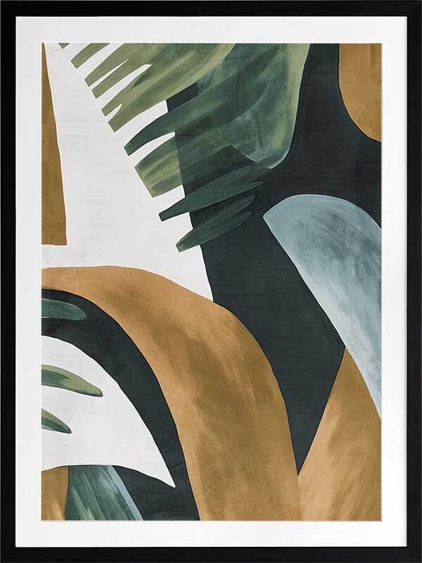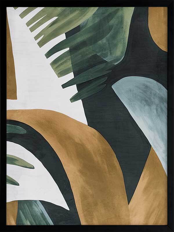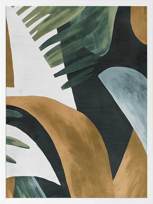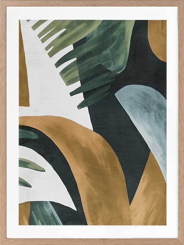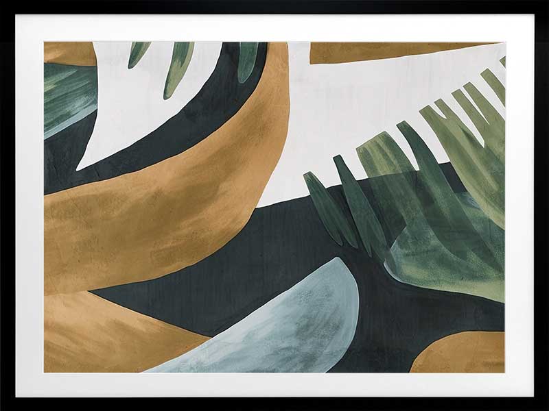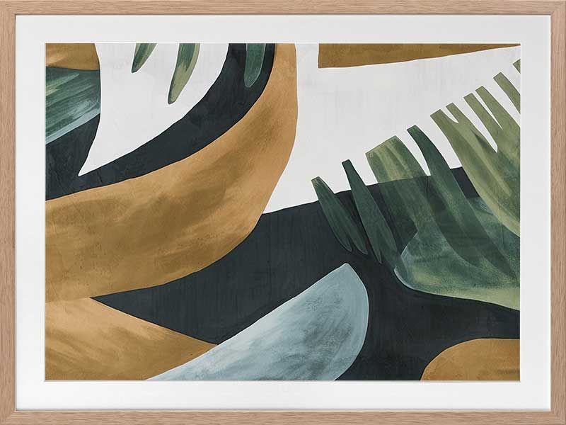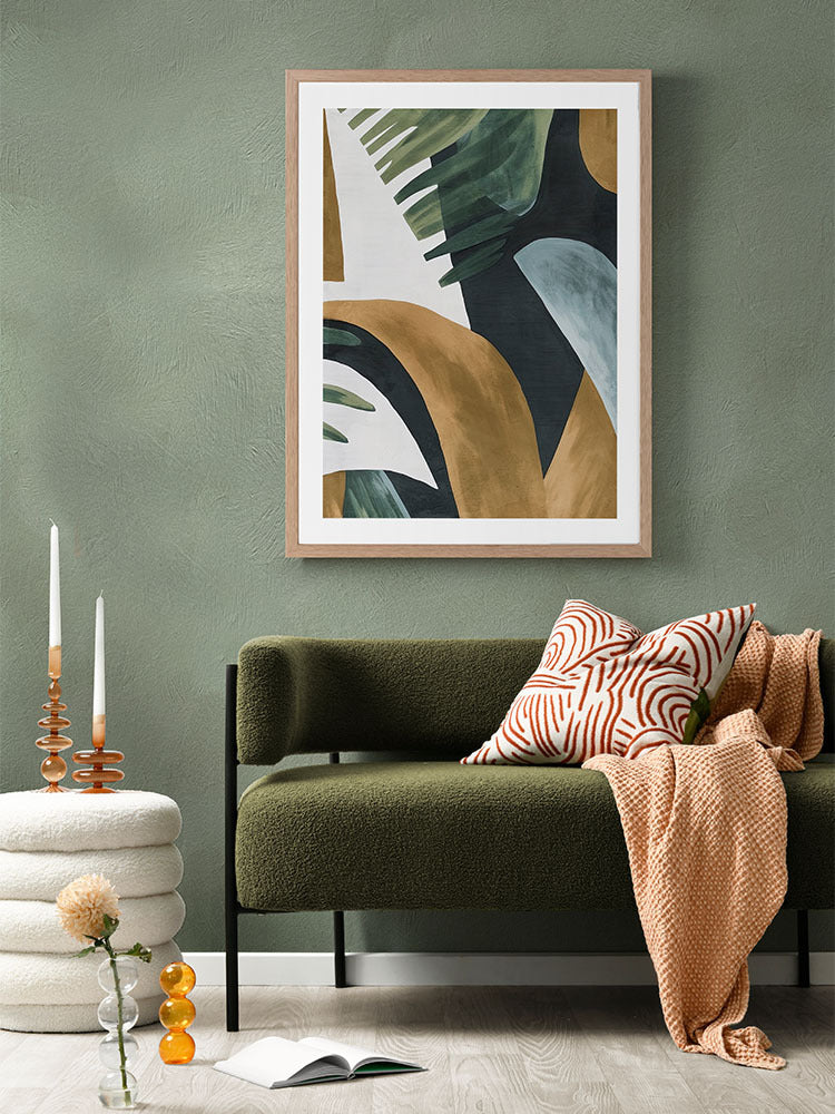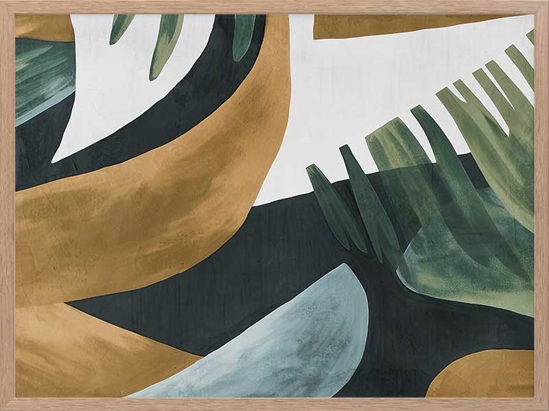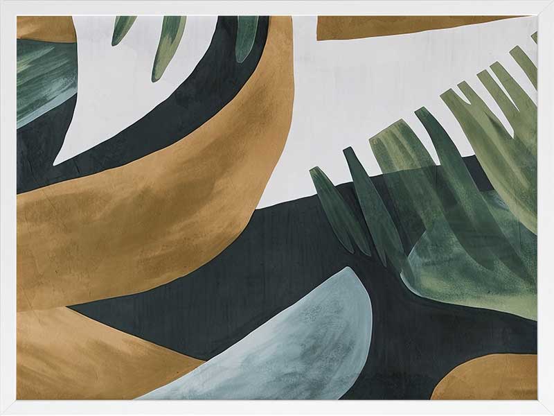 In the Ferns II Framed Art Print - Transport yourself to walks among the ferns and palm trees on a dreamy island vacation with this simple, yet impactful abstract canvas art. With soft, rounded overlapping shapes, this modern art print brings a calming energy to any space. Palette includes olive green and dark green, beige, and white. Pair with In the Ferns I.