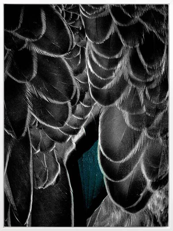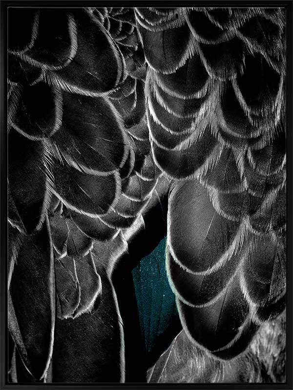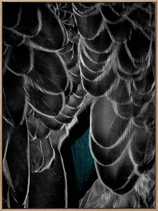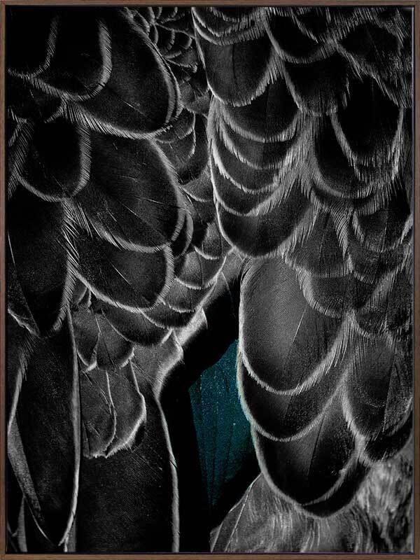 In the Wings Canvas Art Print: A close-up photographic image of a birds black and teal feathers. 2018 AUTUMN/WINTER COLLECTION: CONTINUUM