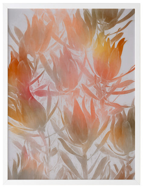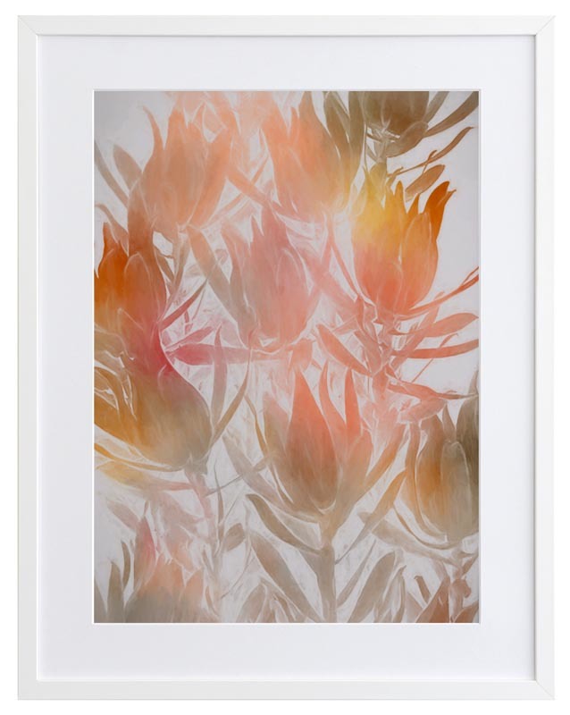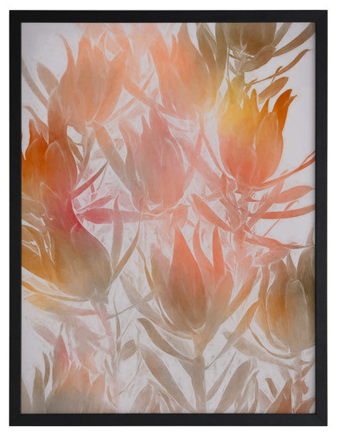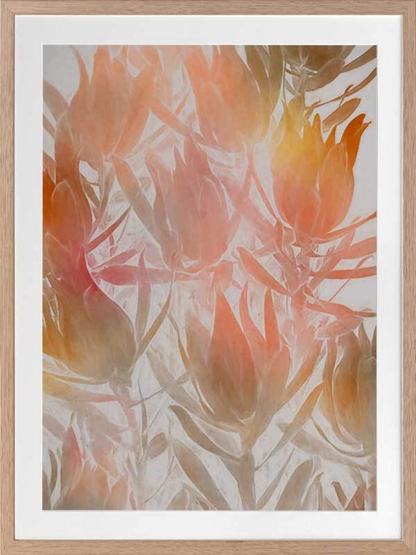 Inca Gold I Framed - Australian native abstract floral with orange and earthtones, a modern twist on a floral still life. 2016 WINTER COLLECTION: INSPIRE