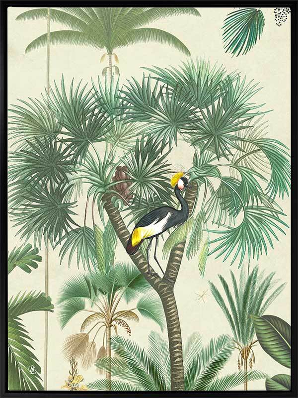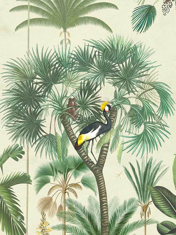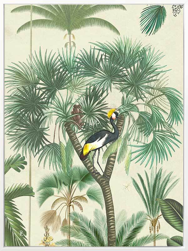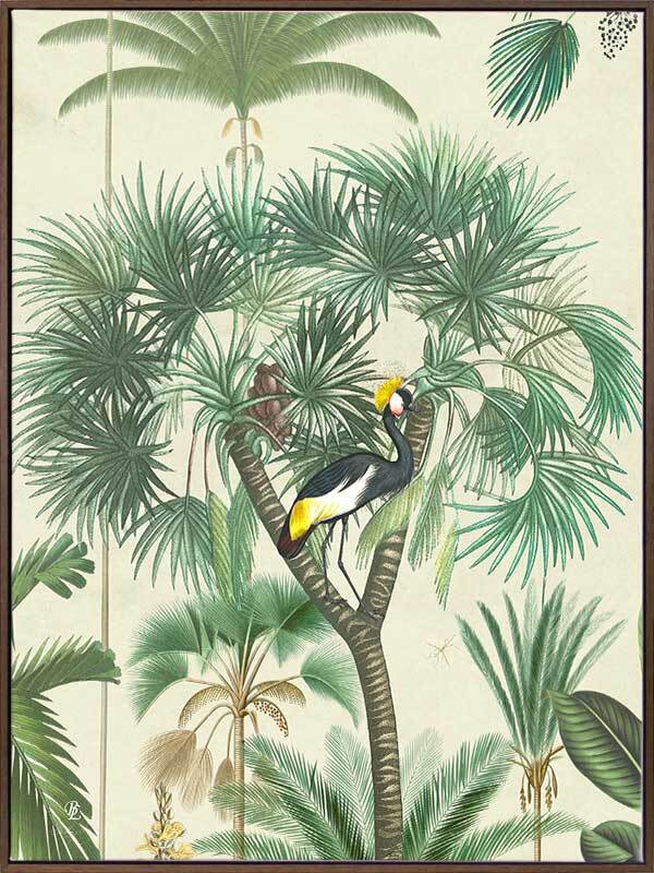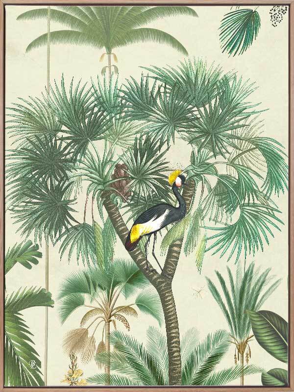 Indian Summer Beige II Canvas Art Print - Inspired by humid Indian Summers, this intricate piece is a conversation-starter for any space. All the animals are out to play, hidden amongst the tropical plants on a hot, misty morning, insects buzzing at every turn. With the pale beige background and forest green foliage, this piece creates all the tropical vibes you need to escape to a holiday getaway for endless hot, summer afternoons.