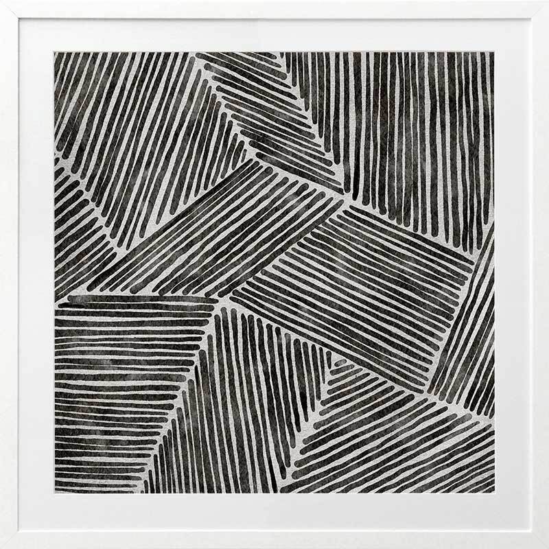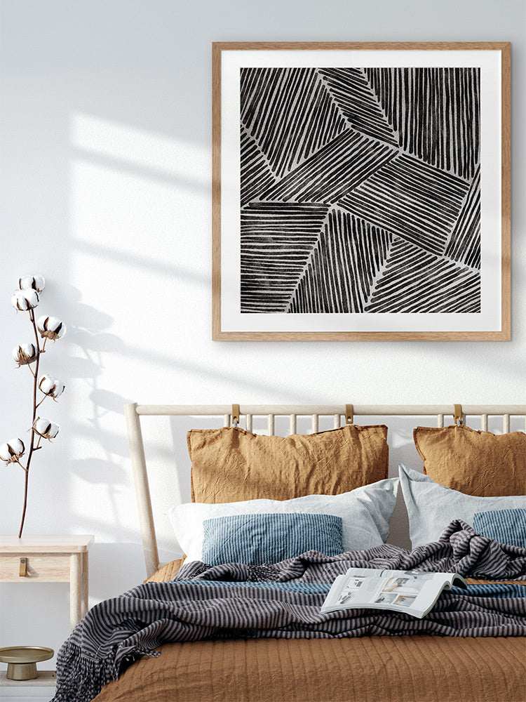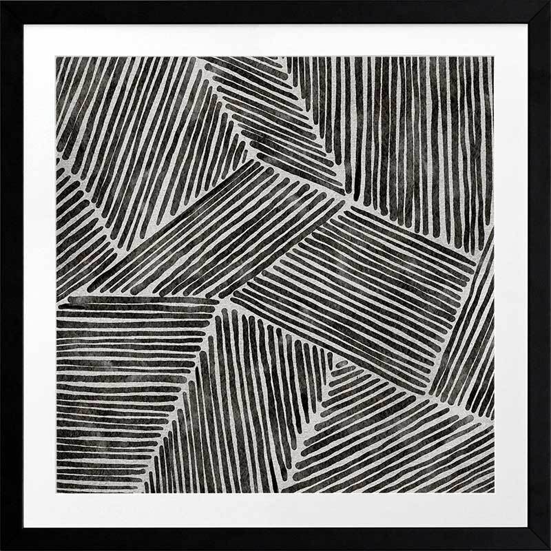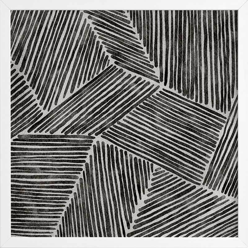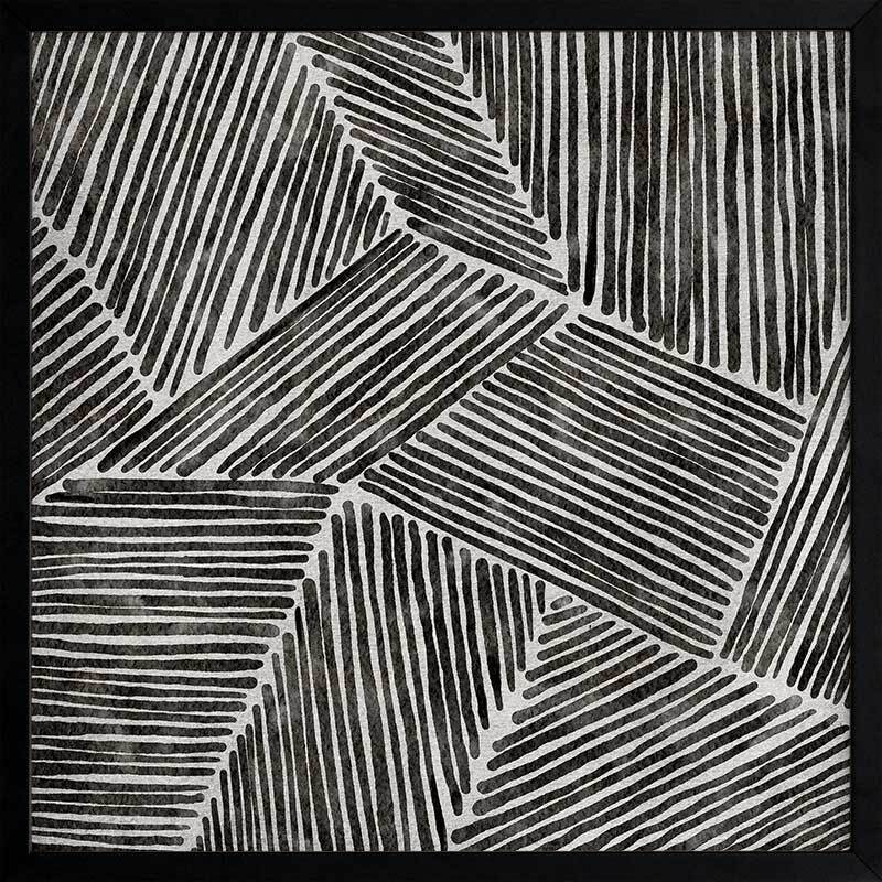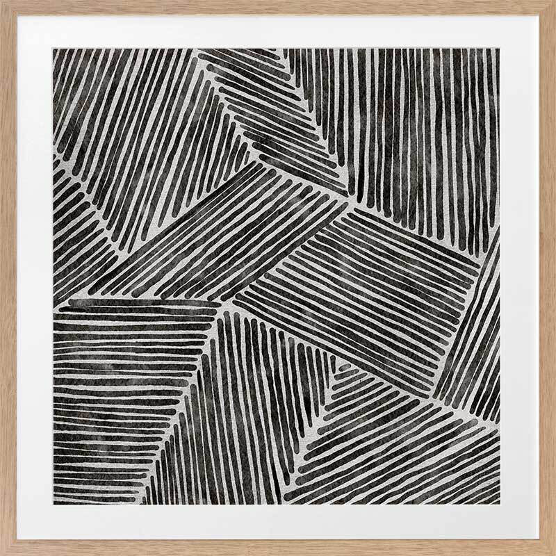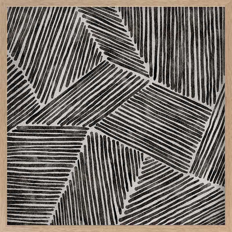 Infinite Framed Art Print - Like palm leaves hanging motionless on a hot summer's day. Loosely placed, straight lines create a sense of uniformity. Contrast is prominent here with different angles, as well as a minimal colour palette of black with a light-grey background. An effortless statement piece for any room.