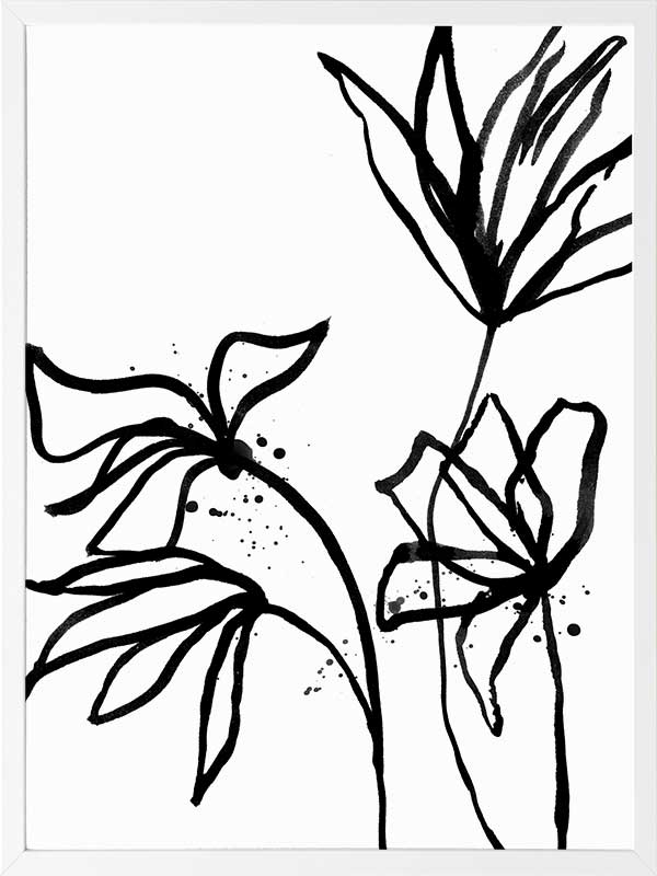 Ink Flowers II - A delicate painting featuring black ink flowers. Pairs with Ink Flowers I.