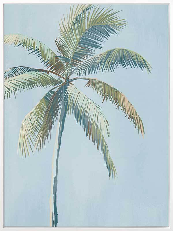 Island Dreaming Canvas Art Print - Waking up under the palm trees is the best! Your senses kick in - ahh - living your dream on a tropical island! The warmth of the sun shines through the deep green palms reflecting glistening golden and white, casting shadows on the ground. Not a cloud in sight - just a perfect hue of sky blue for as far as you can see! Keep the dream alive and hang in your fave chill-out space in your home.