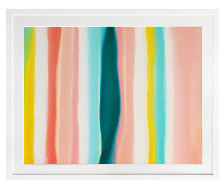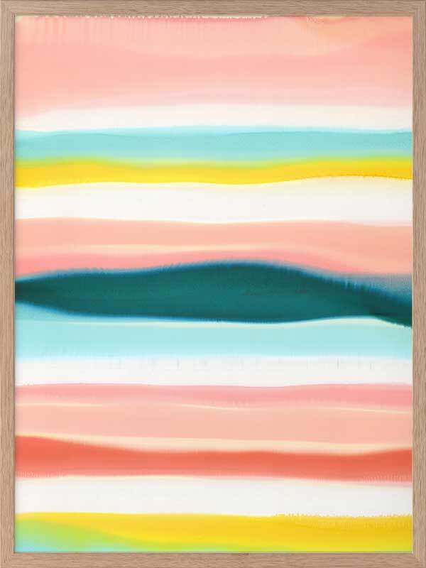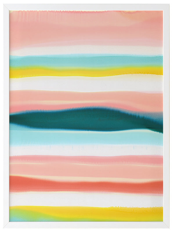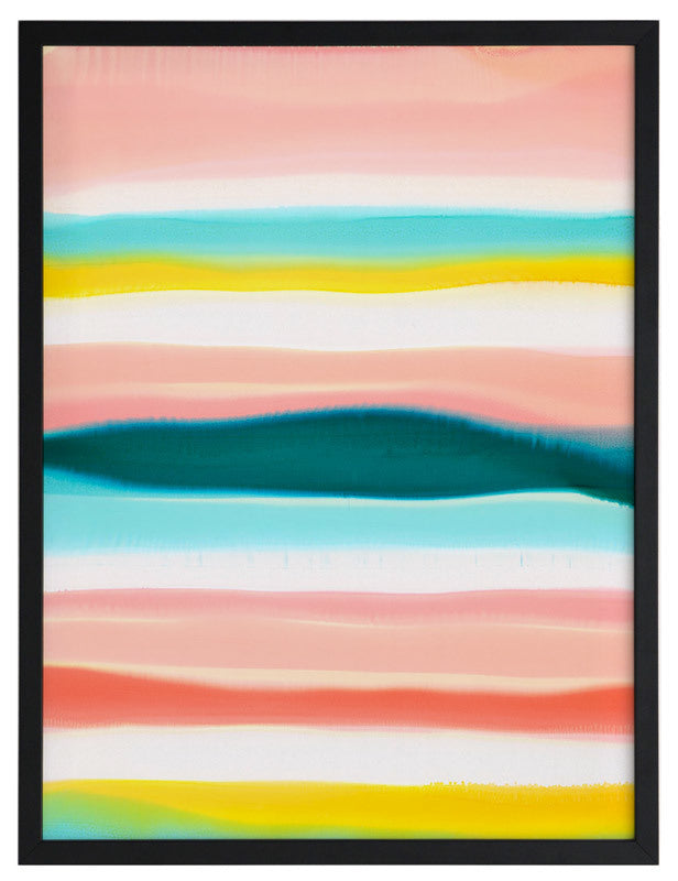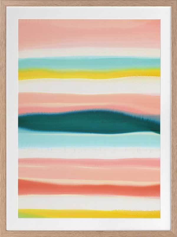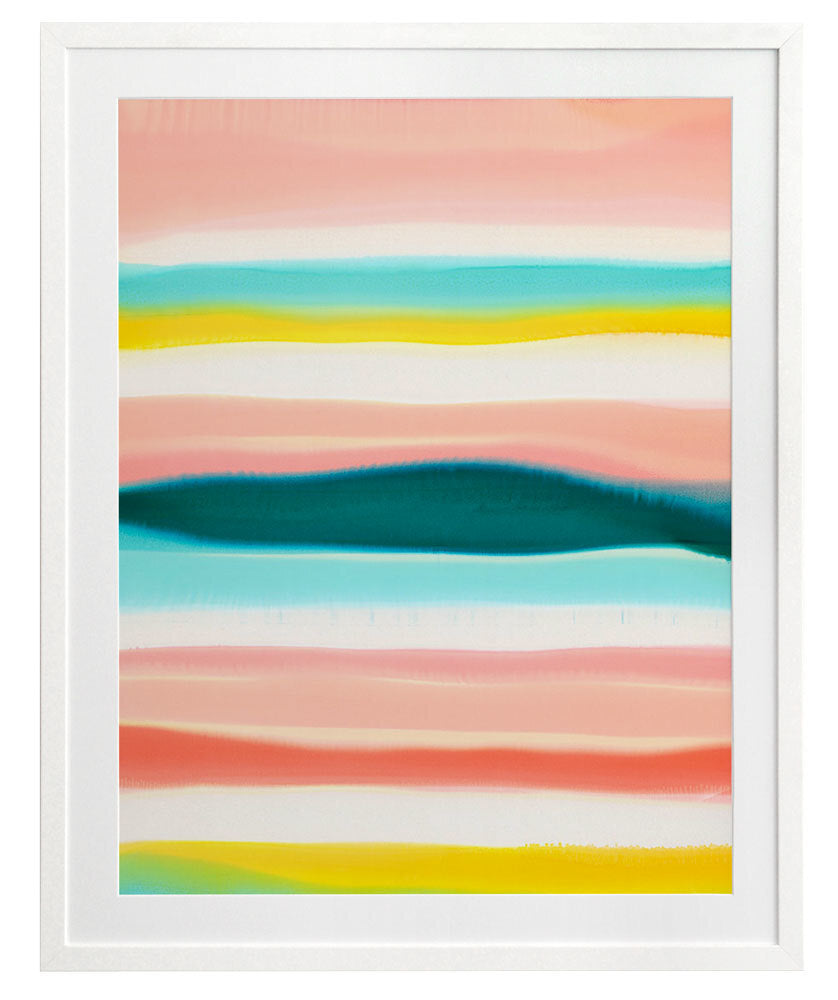 Island Home Framed Print: Depicting an island in the midst of the open ocean, the artist's inspired use of line and a limited pastel palette creates an understated and modern abstract image. The bold contrast of the island is symbolic of its standing as a sanctuary; a place of safety and security; a home. 2014 SPRING/SUMMER COLLECTION: THE FIRST COLLECTION