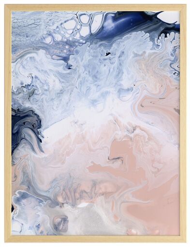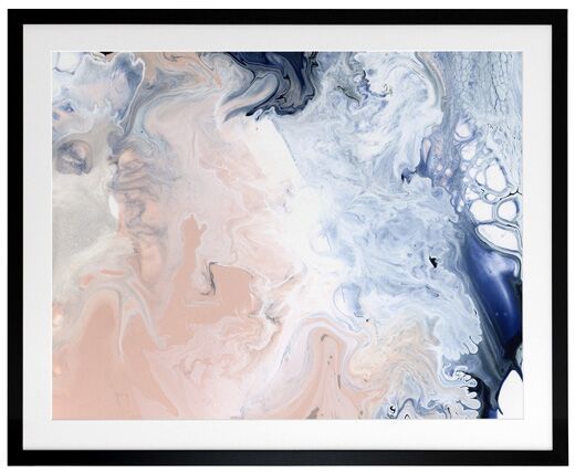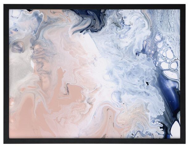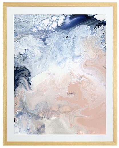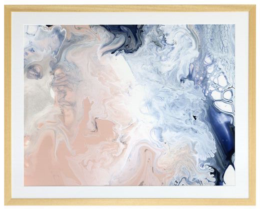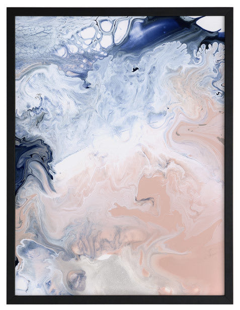 Ithaca Framed Print: A stunning abstract piece featuring marbled blush, white, and indigo tones - reminscent of a swirling seascape. Pairs with Aegina. 2017 SPRING/SUMMER COLLECTION: RHAPSODY