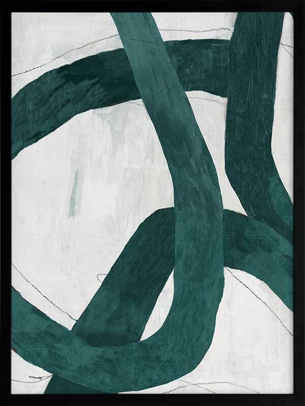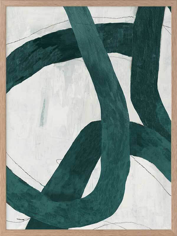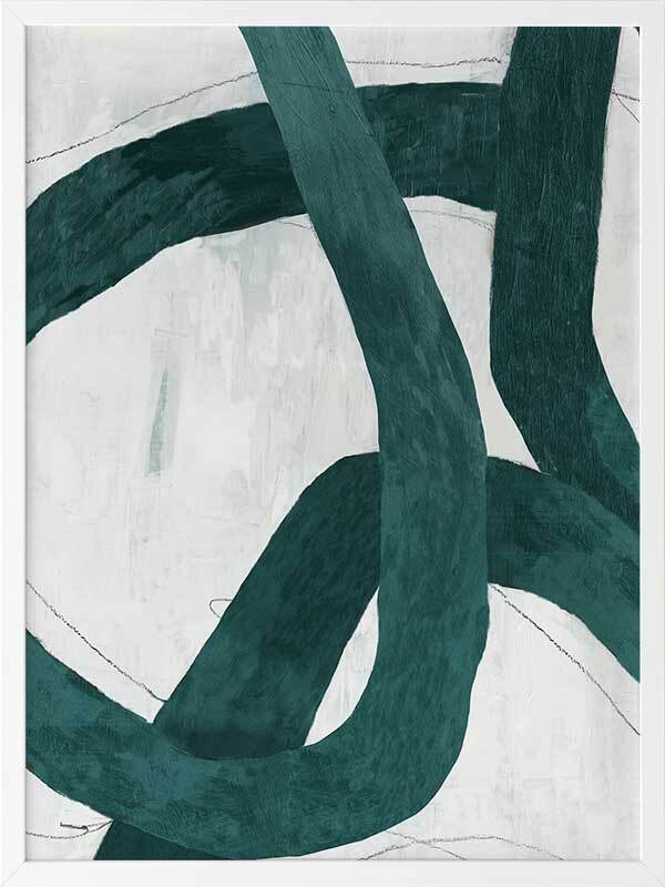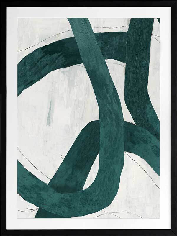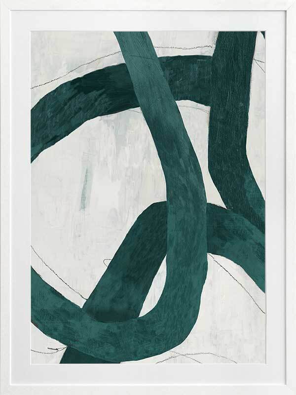 Jade Coil I Framed Art Print - Oblique lines sweep across the canvas, entangling to form a pathway of discovery and adventure. Bold and graphic, the palette of jewel-toned jade and soft off-white make this is a versatile abstract piece for any interior style.
