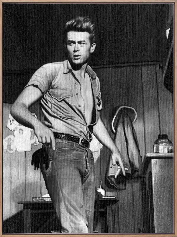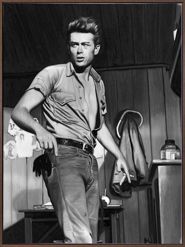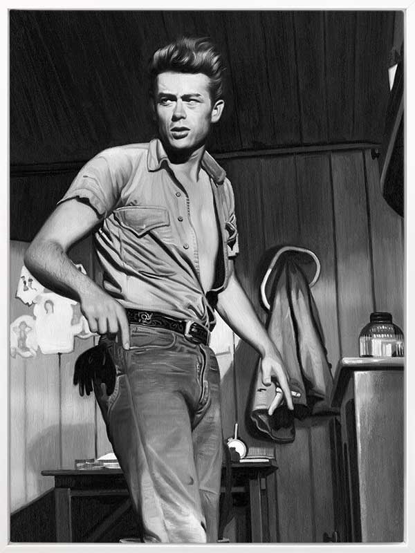 James Dean Mono - A monochromatic photographic image of a young, candid James Dean.