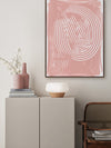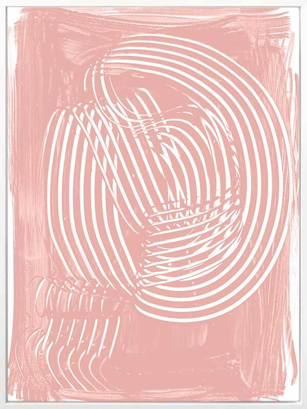 Jean IV Canvas Art Print - Textural, experimental and expressive, this simple abstract artwork uses paint strokes, curves and negative space to create an organic and mesmerising visual statement. The colour palette is soft and feminine, featuring white lines against a blush pink background. Artwork matches with Jean I, II and III.