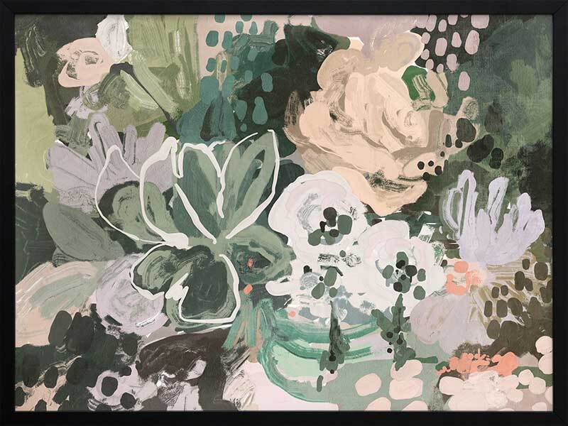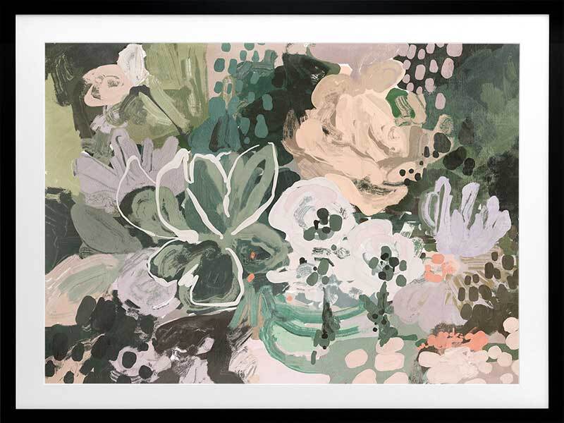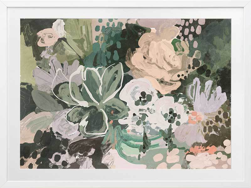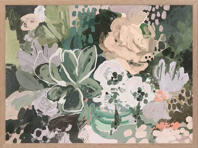 Jungle Lily Framed Art Print - Plunge into the enchanting floral jungle and immerse yourself in its captivating allure. This artwork bursts with vibrant creative energy, seamlessly blending the beauty of flowers with abstract elements. The lush jungle palette, adorned with deep greens, splashes of white, purple, and pink offers a soothing and balanced visual experience. Surrender to the exquisite beauty of abstract florals, where your imagination blossoms freely amidst this mesmerizing oasis.