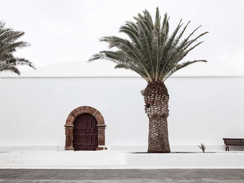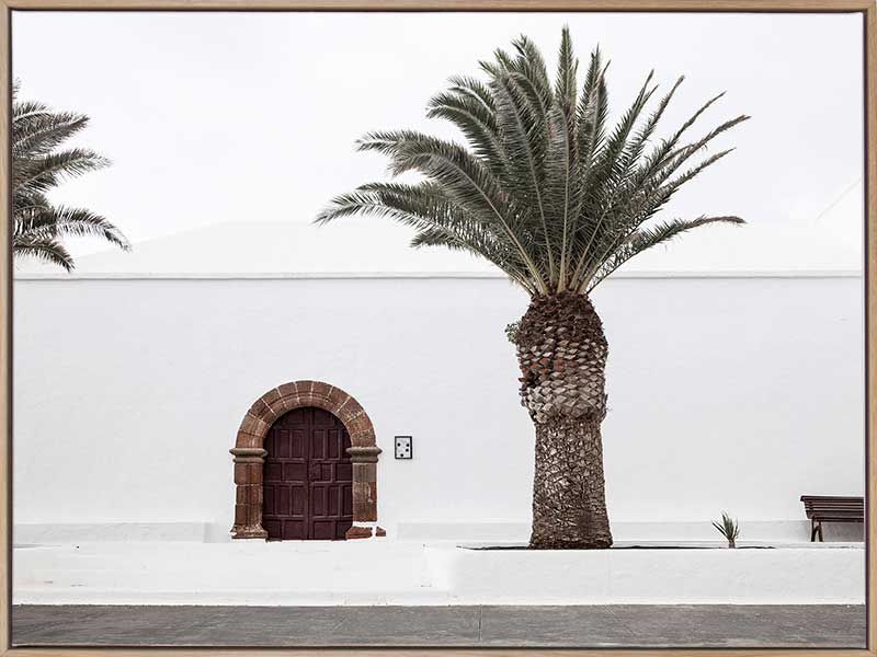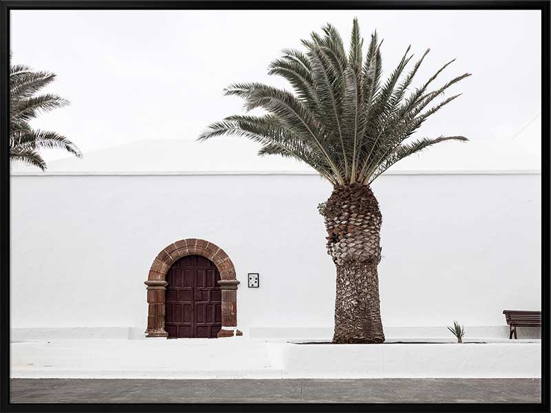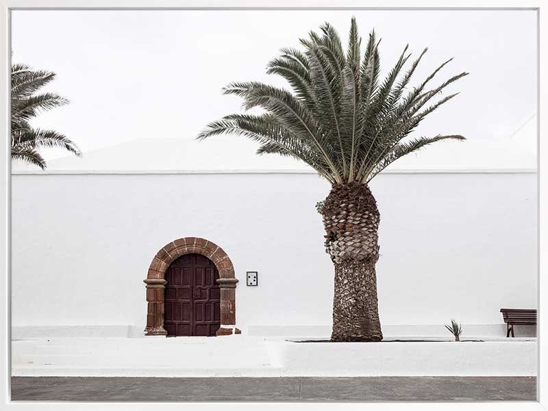 Keep Out - Architecture contrasts perfectly with a relaxed, tropical setting in this quirky and minimalistic photographic print, featuring a large palm in front of a stark white wall and a beautiful arched doorway.